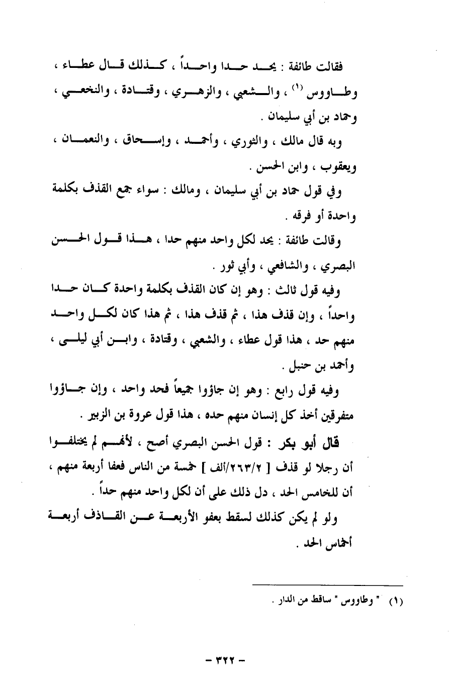 وقالت طائفة: يحد لكل واحد منهم حدا، هذا قول الحسن البصري، والشافعي، وأبي ثور.