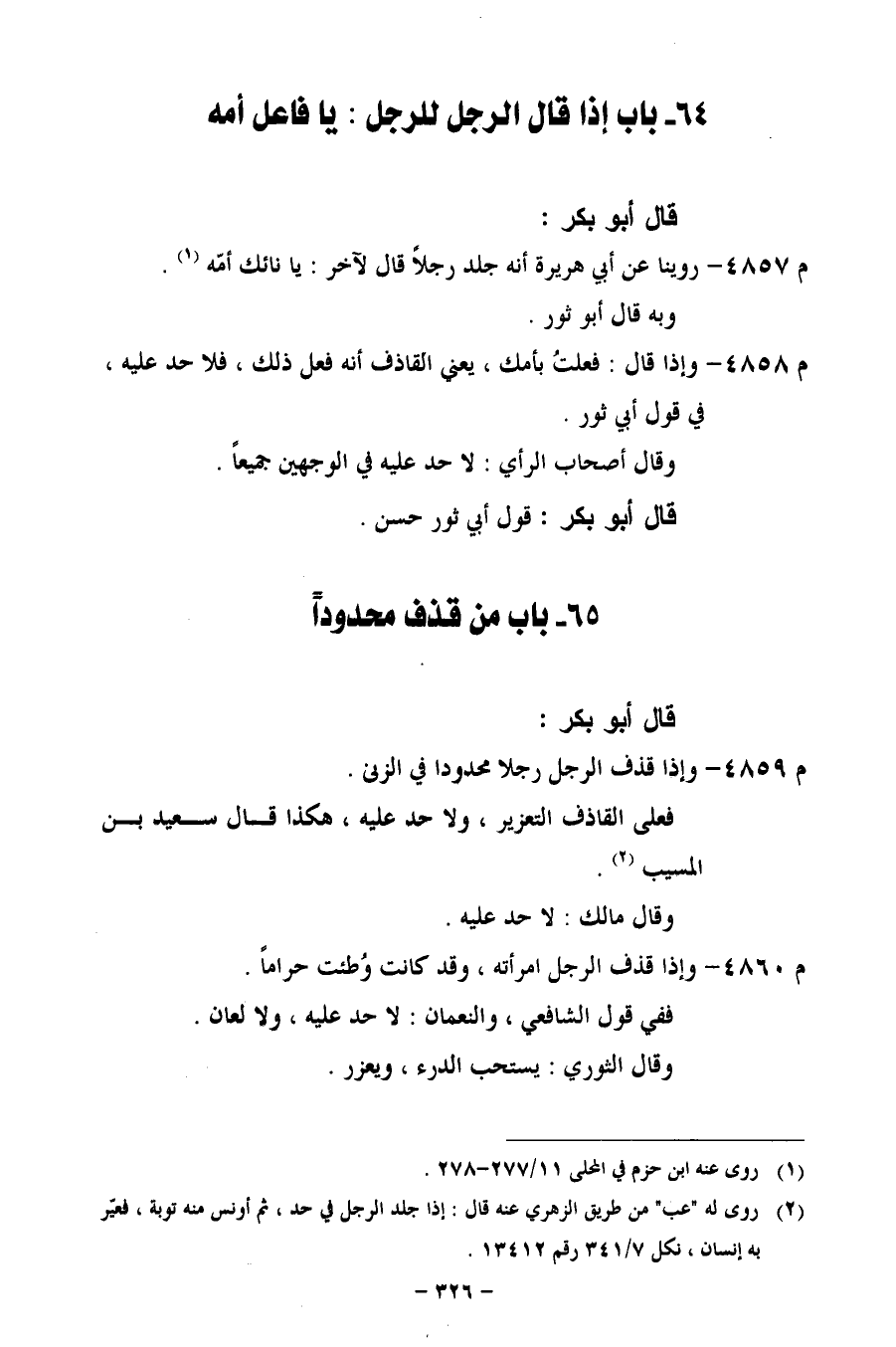 م 4857 - روينا عن أبي هريرة أنه جلد رجلاً قال لآخر: يا نائك أمّه.
