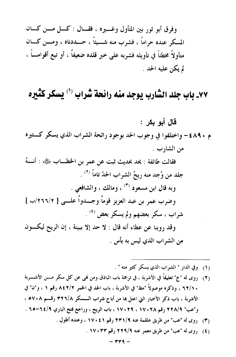 77 - باب جلد الشارب يوجد منه رائحة شراب (¬1) يسكر كثيره