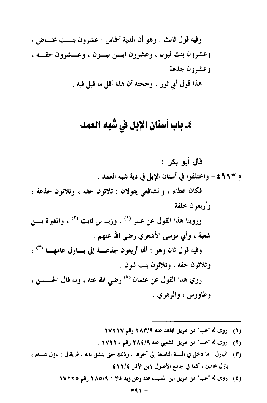 4 - باب أسنان الإبل في شبه العمد