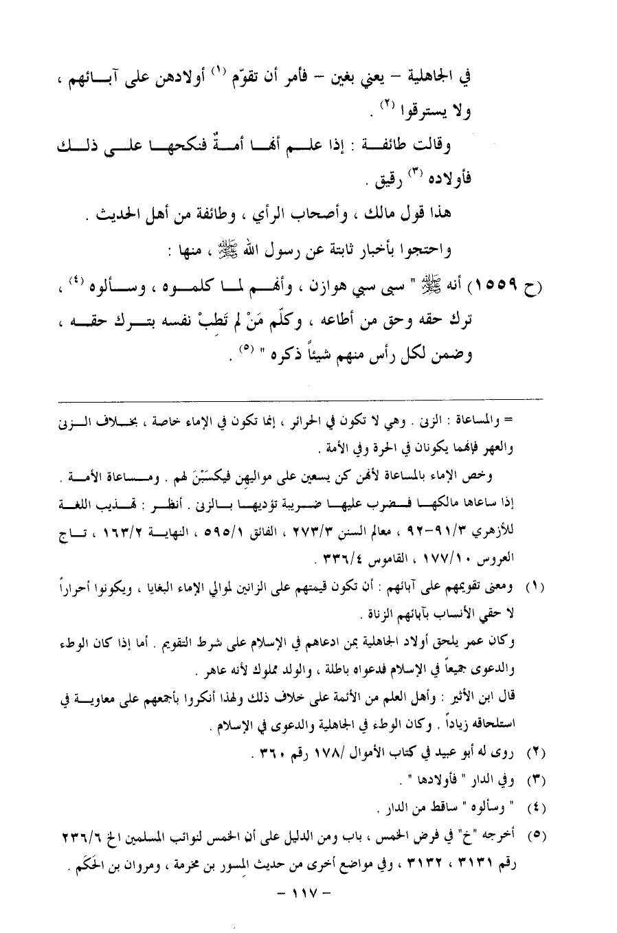 في الجاهلية -يعني بغين- فأمر أن تقوّم أولادهن على آبائهم، ولا يسترقوا.