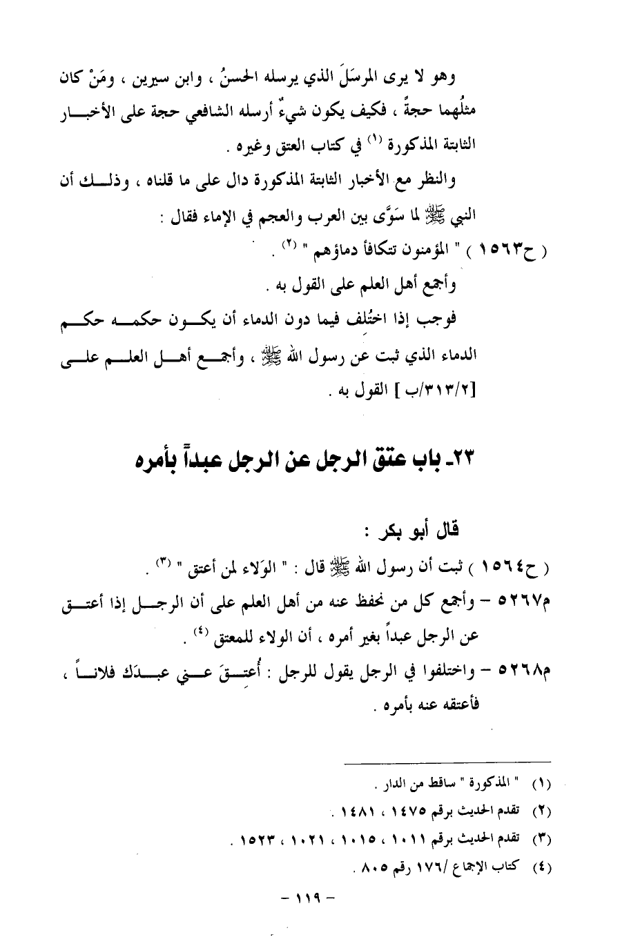 (ح 1563) "المؤمنون تتكافأ دماؤهم".