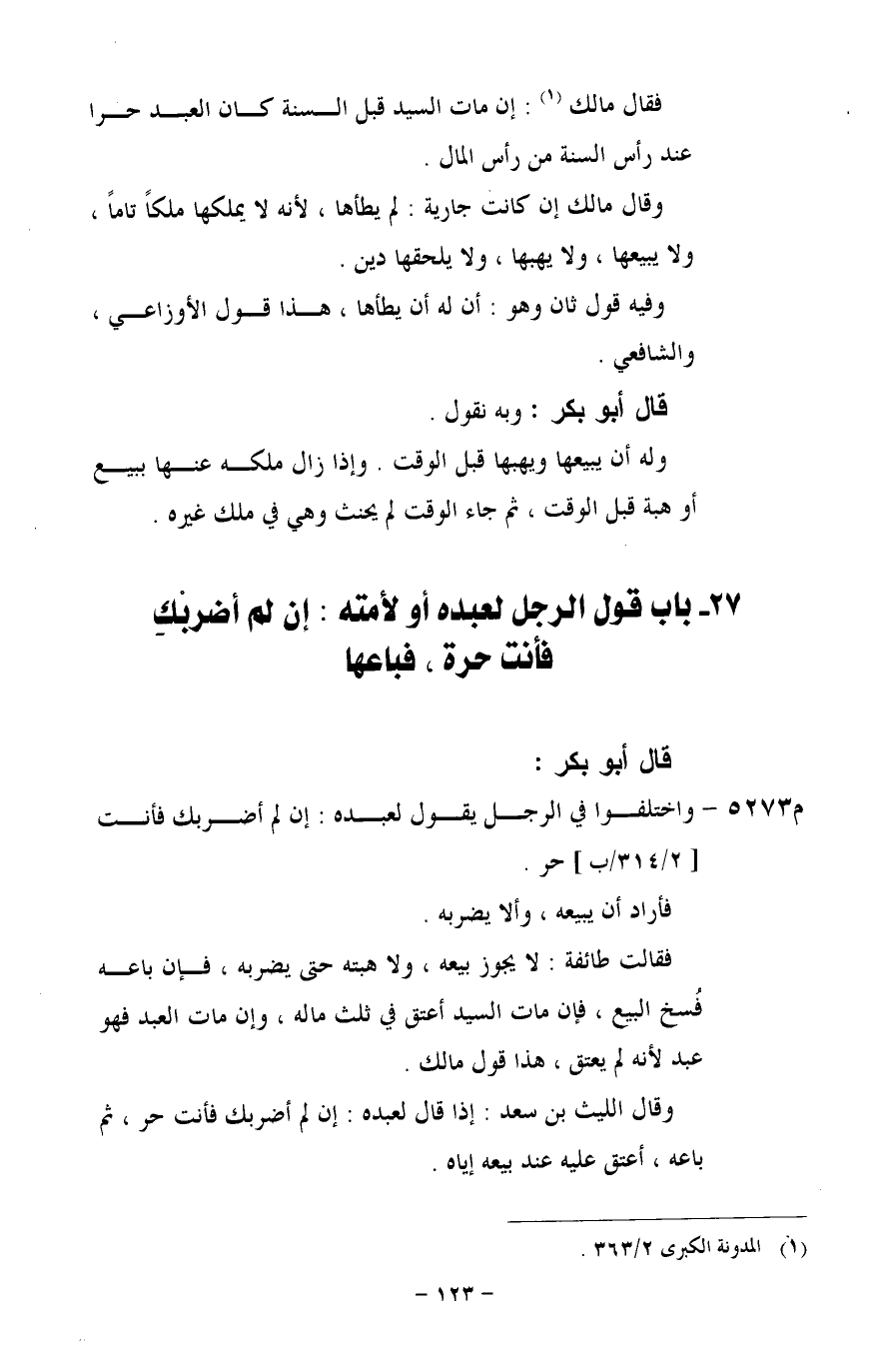 م 5273 - واختلفوا في الرجل يقول لعبده: إن أضربك فأنت [2/ 314/ب] حر.