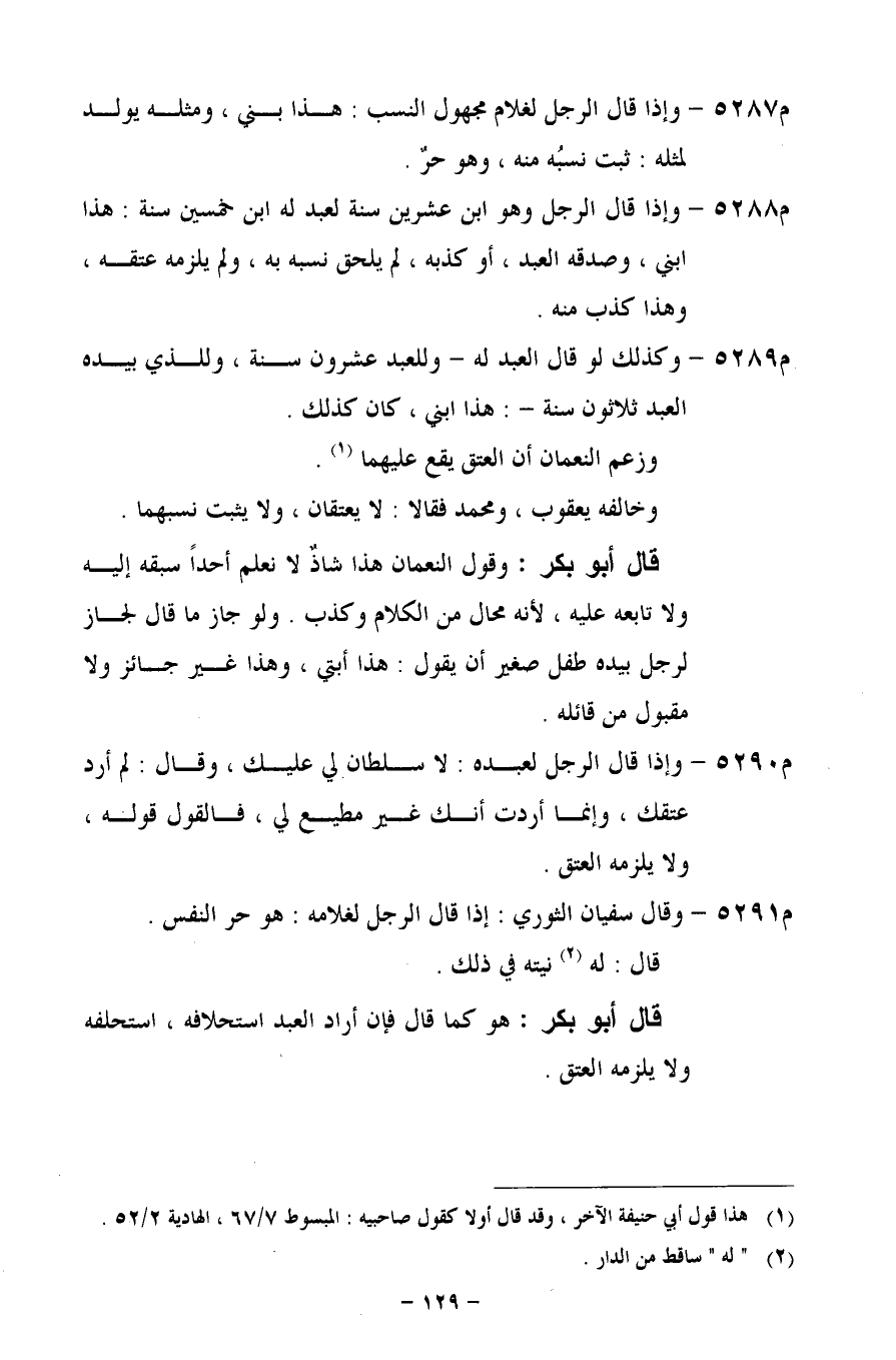 م 5291 - وقال سفيان الثوري: إذا قال الرجل لغلامه: هو حر النفس.