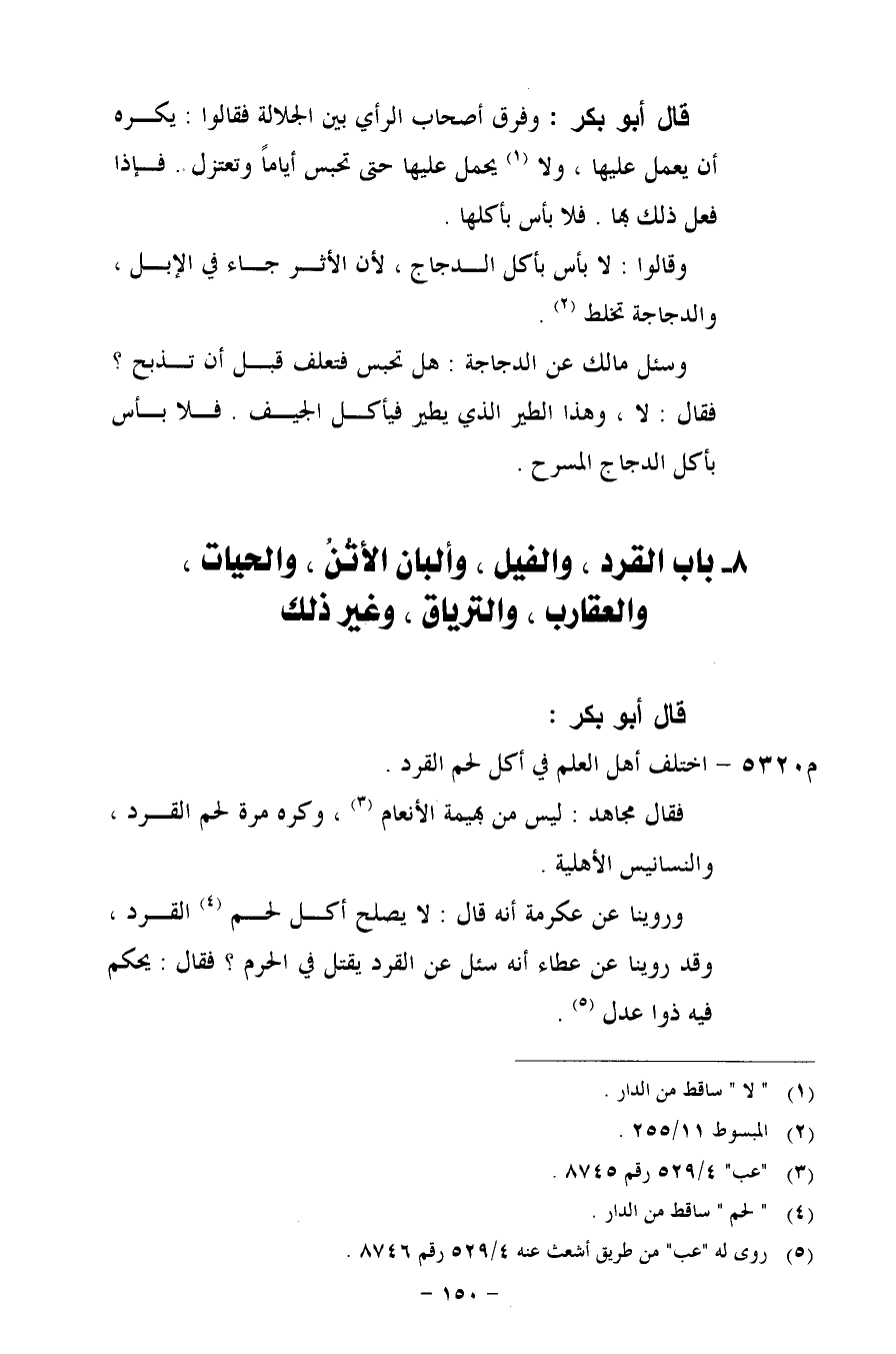 م 5320 - اختلف أهل العلم في أكل لحم القرد.