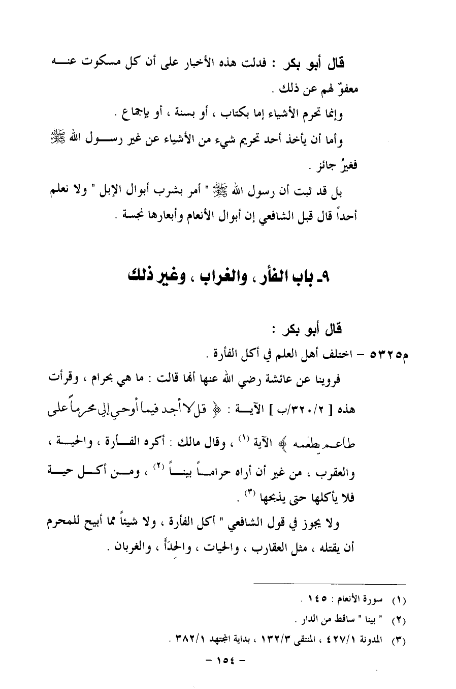 وإنما تحرم الأشياء إما بكتاب، أو بسنة، أو بإجماع.