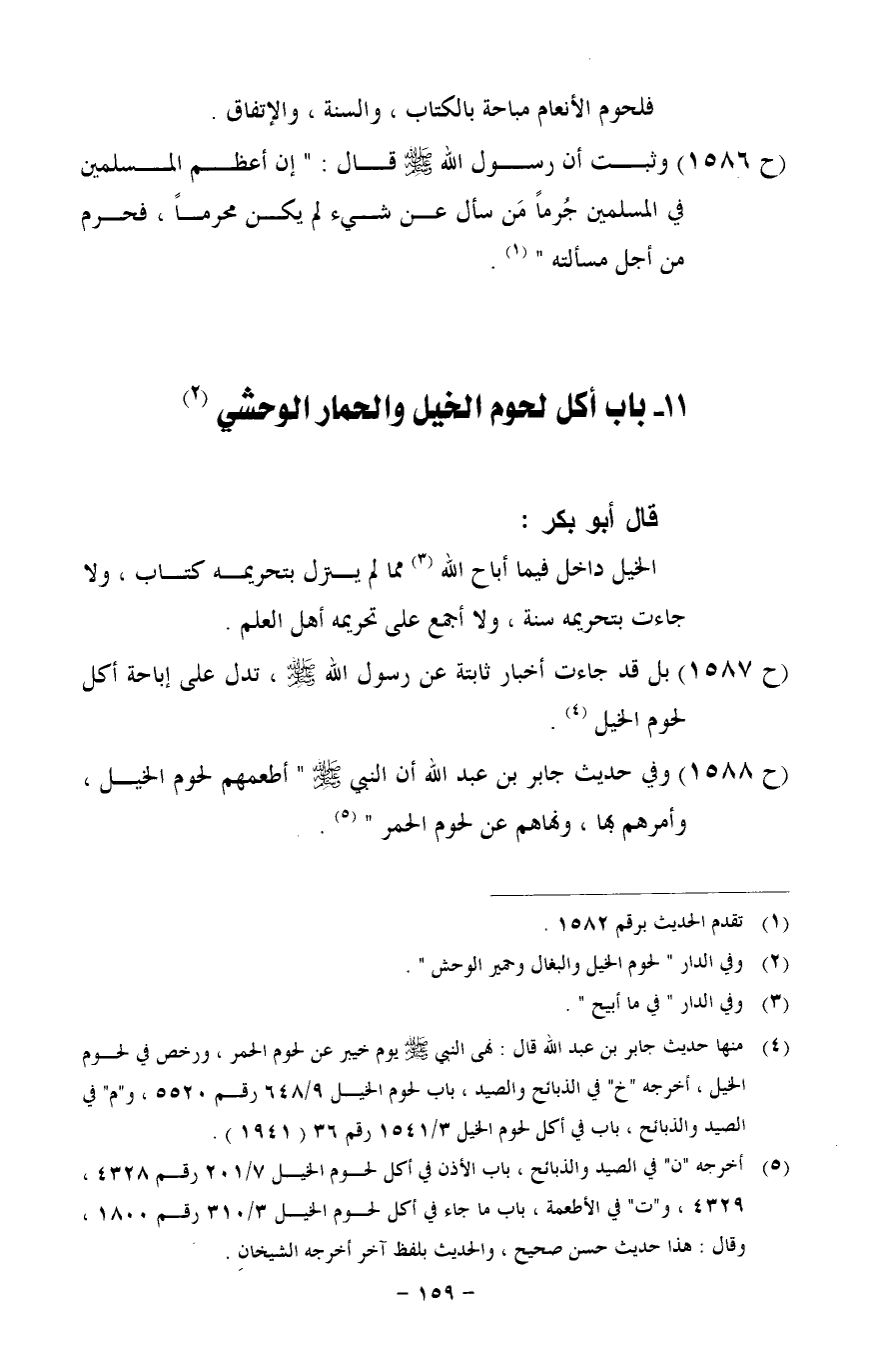 (ح 1588) وفي حديث جابر بن عبد الله أن النبي- صلى الله عليه وسلم - "أطعمهم لحوم الخيل،