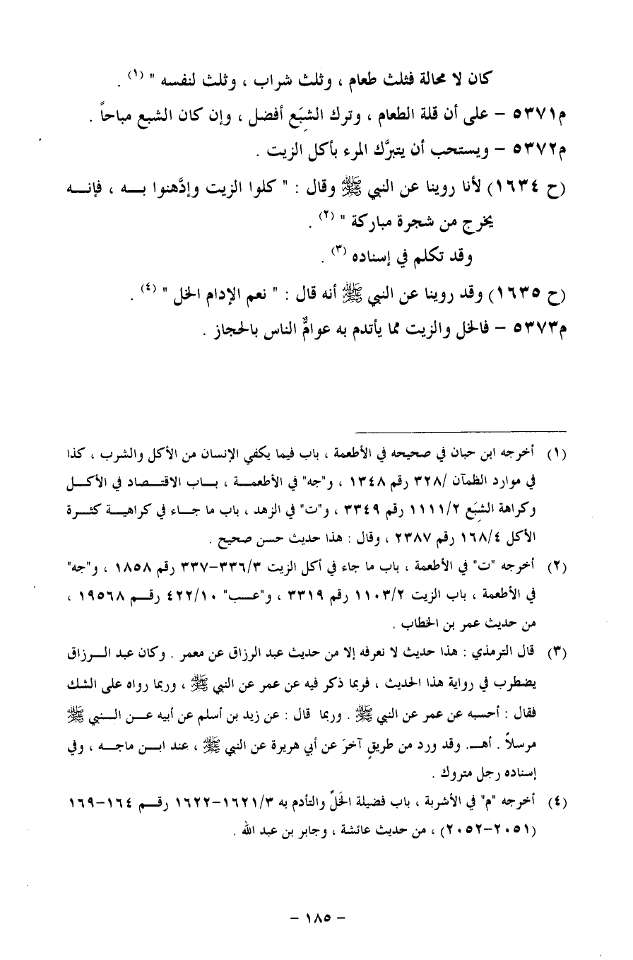 (ح 1634) لأنا روينا عن النبي - صلى الله عليه وسلم - وقال: "كلوا الزيت وادَّهنوا به، فإنه يخرج من شجرة مباركة".