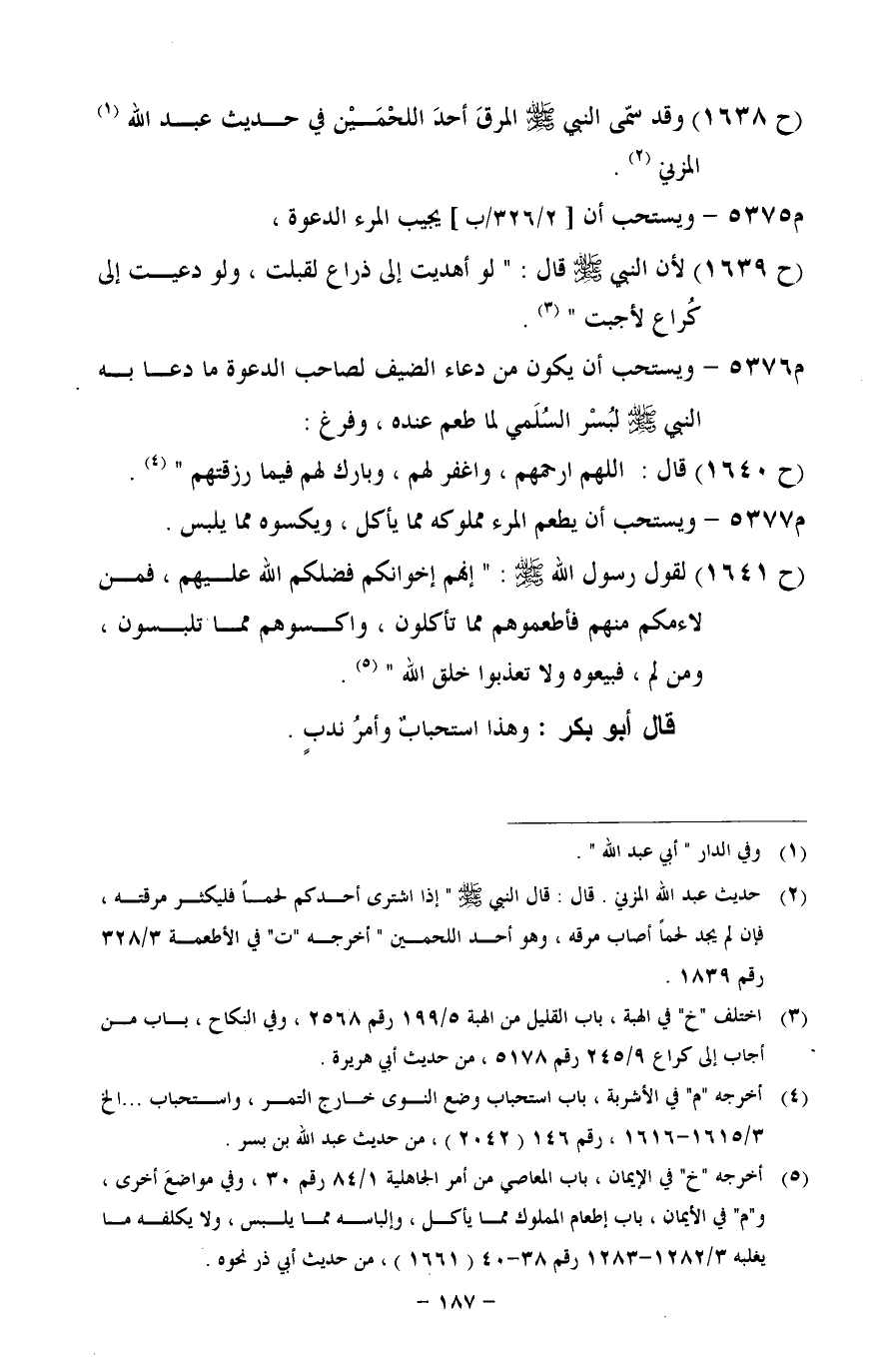 (ح 1639) لأن النبي - صلى الله عليه وسلم - قال: "لو أهديت إلى ذراع لقبلت، ولو دعيت إلى