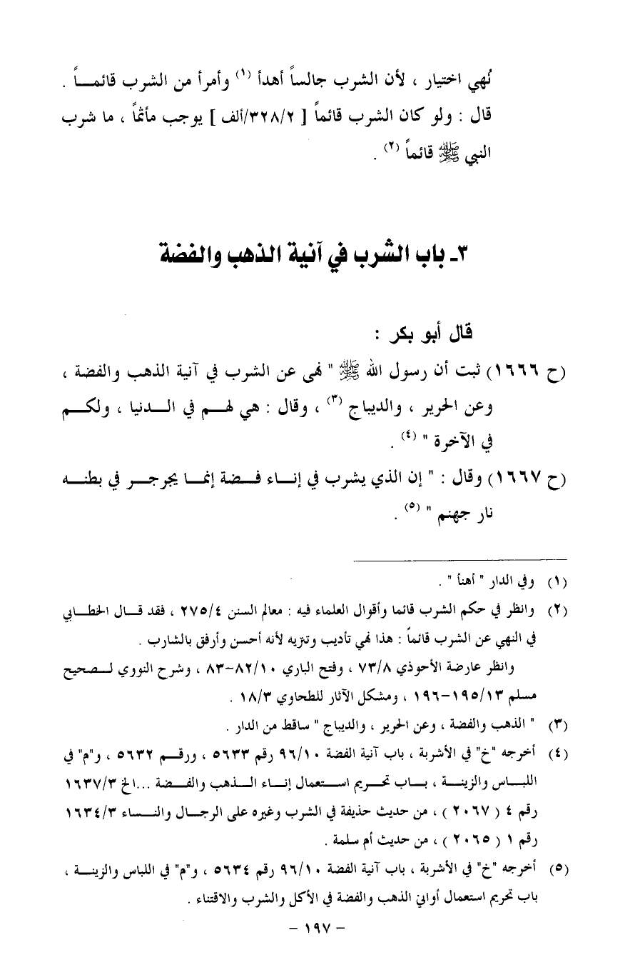 (ح 1667) وقال: "إن الذي يشرب في إناء فضة إنما يجرجر في بطنه نار جهنم".