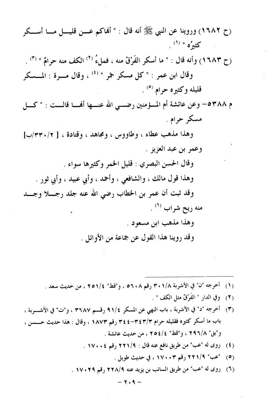 (ح 1682) وروينا عن النبي- صلى الله عليه وسلم - قال: "أنهاكم عن قليل ما أسكر كثيرُه".