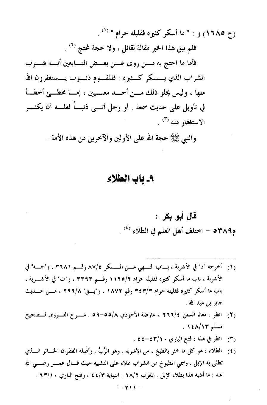 فأما ما احتج به من روى عن بعض التابعين أنه شرب الشراب الذي يسكر كثيره: فللقوم ذنوب يستغفرون الله منها، وليس يخلو ذلك من أحد معنيين، إما مخطئ أخطأ في تأويل على حديث سمعة. أو رجل أتى ذنباً لعله أن يكثر الاستغفار منه.