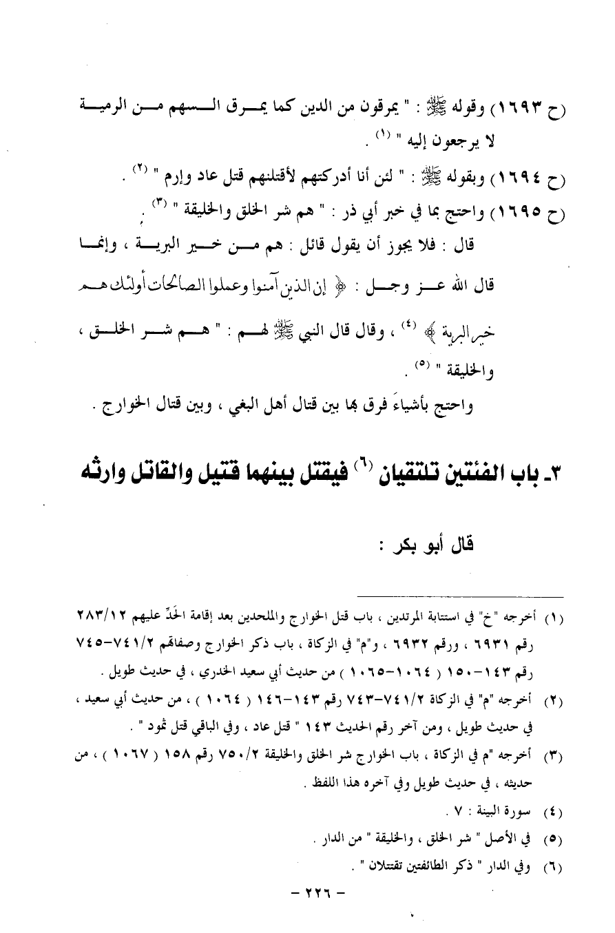 (ح 1695) واحتج بما في خبر أبي ذر: "هم شر الخلق والخليقة".