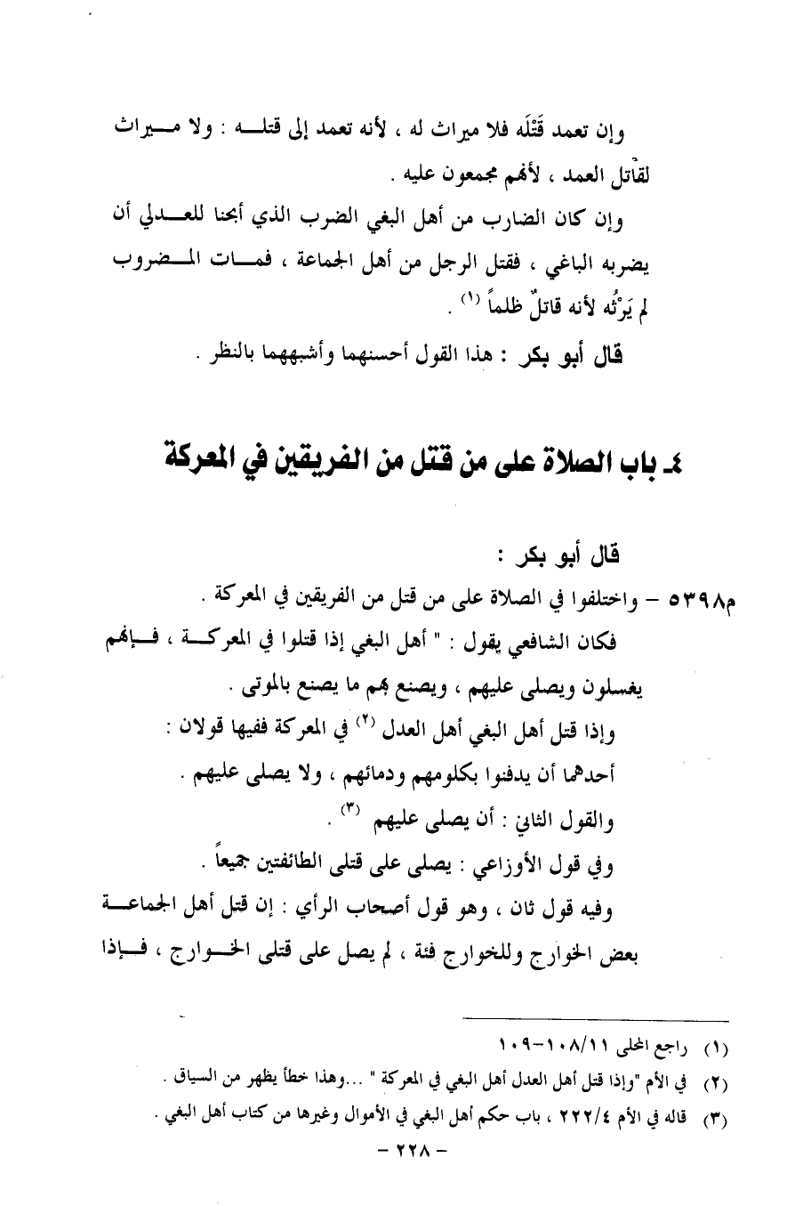 م 5398 - واختلفوا في الصلاة على من قتل من الفريقين في المعركة.
