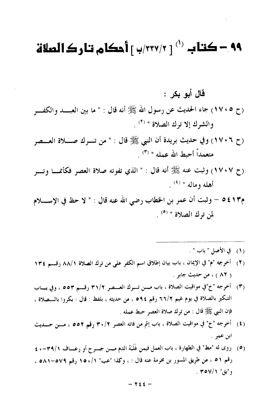 99 - كتاب (¬1) [2/ 337/ب] أحكام تارك الصلاة