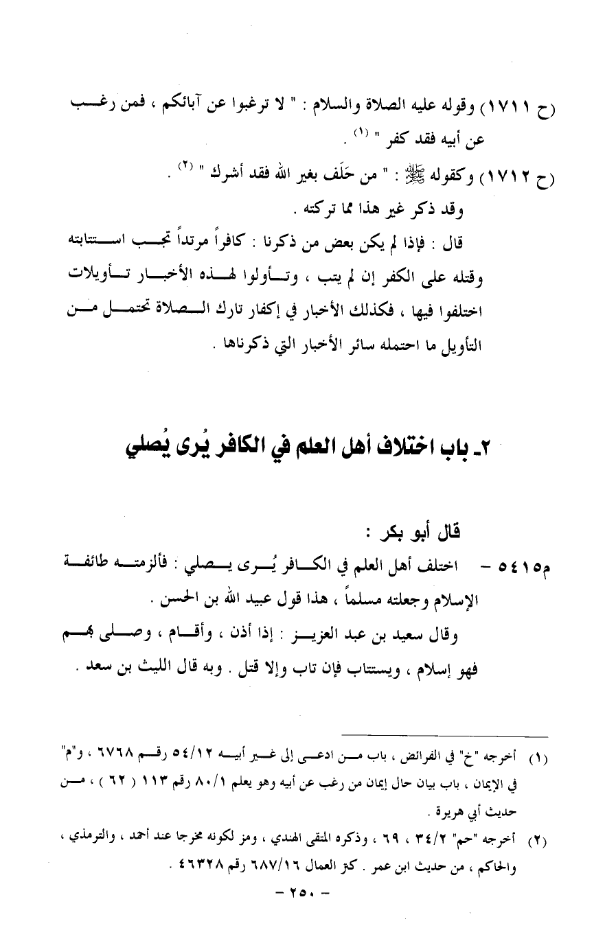 (ح 1711) وقوله عليه الصلاة والسلام: "لا ترغبوا عن آبائكم، فمن رغب عن أبيه فقد كفر".