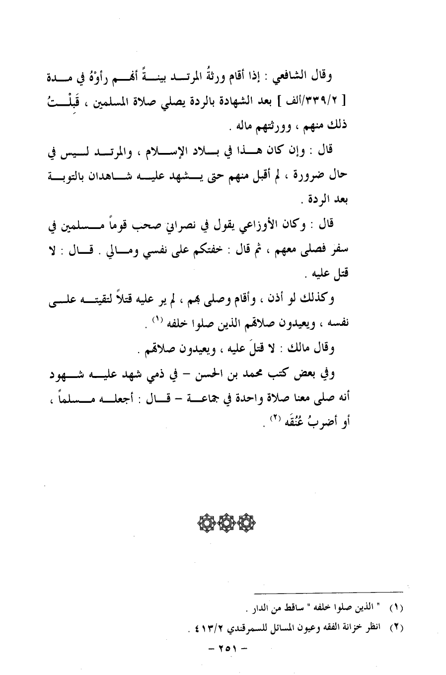 وقال الشافعي: إذا أقام ورثةُ المرتد بينةً أنهم رأوْهُ في مدة [2/ 339/ألف] بعد الشهادة بالردة يصلي صلاة المسلمين، قَبِلْتُ ذلك منهم، وورثتهم ماله.
