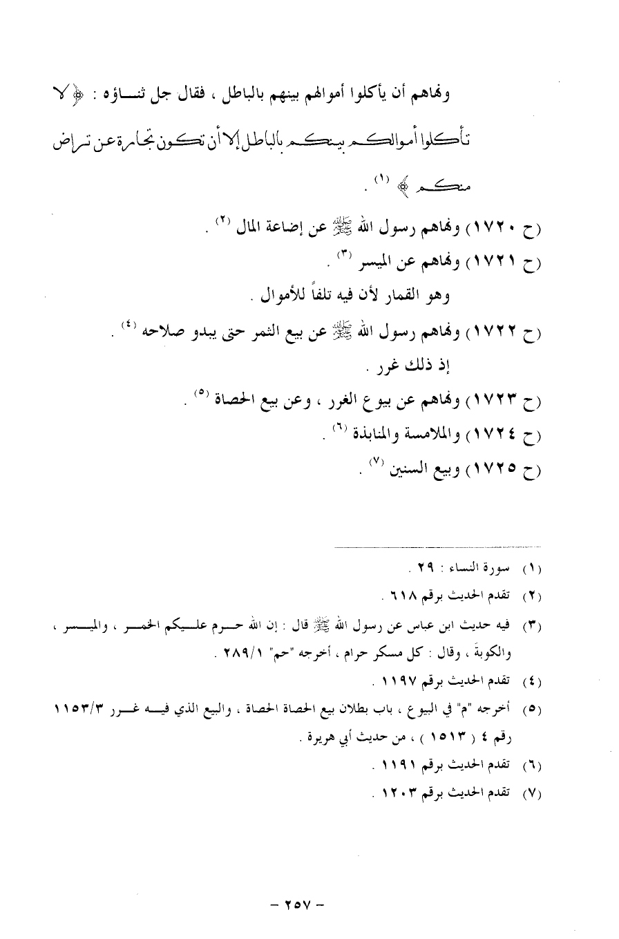 (ح 1721) ونهاهم عن الميسر.