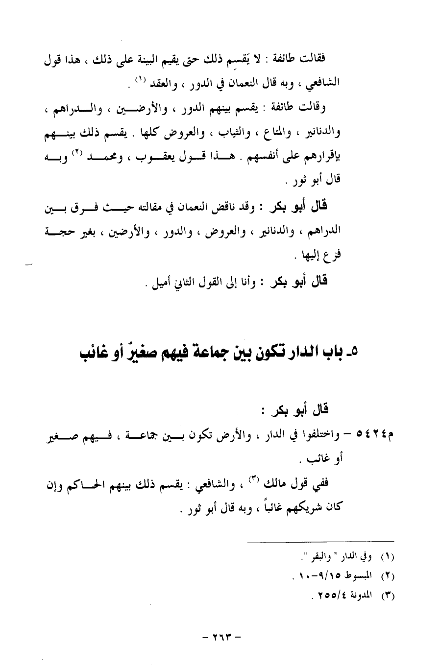 5 - باب الدار تكون بين جماعة فيهم صغيرٌ أو غائب
