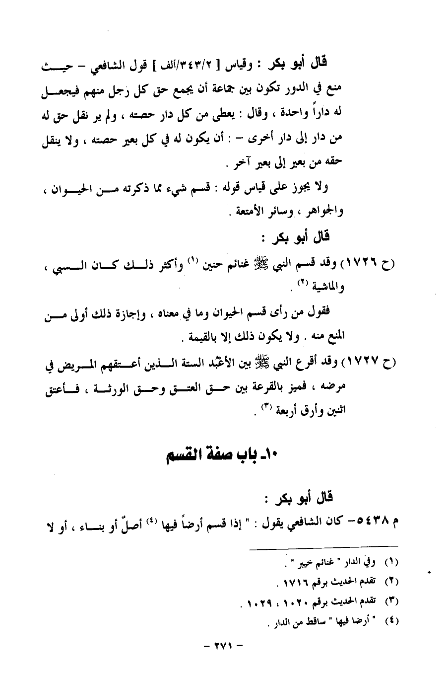 قال أبو بكر: وقياس [2/ 343/ألف] قول الشافعي- حيث منع في الدور تكون بين جماعة أن يجمع حق كل رجل منهم فيجعل له داراً واحدة، وقال: يعطى من كل دار حصته، ولم ير نقل حق له من دار إلى دار أخرى-: أن يكون له في كل بعير حصته، ولا ينقل حقه من بعير إلى بعير آخر.