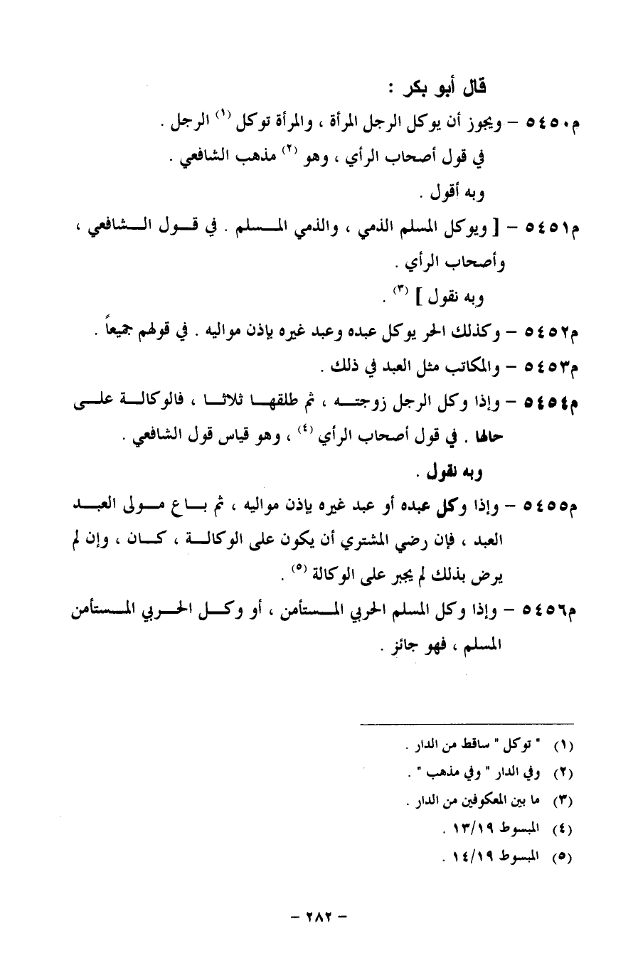 م 5451 - [ويوكل المسلم الذمي، والذمي المسلم. في قول الشافعي، وأصحاب الرأي.