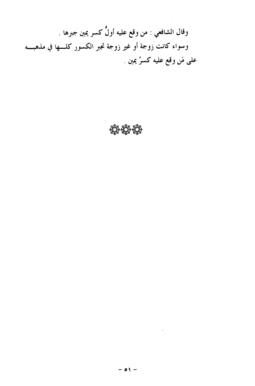 وقال الشافعي: من وقع عليه أولُّ كسر يمين جبرها.