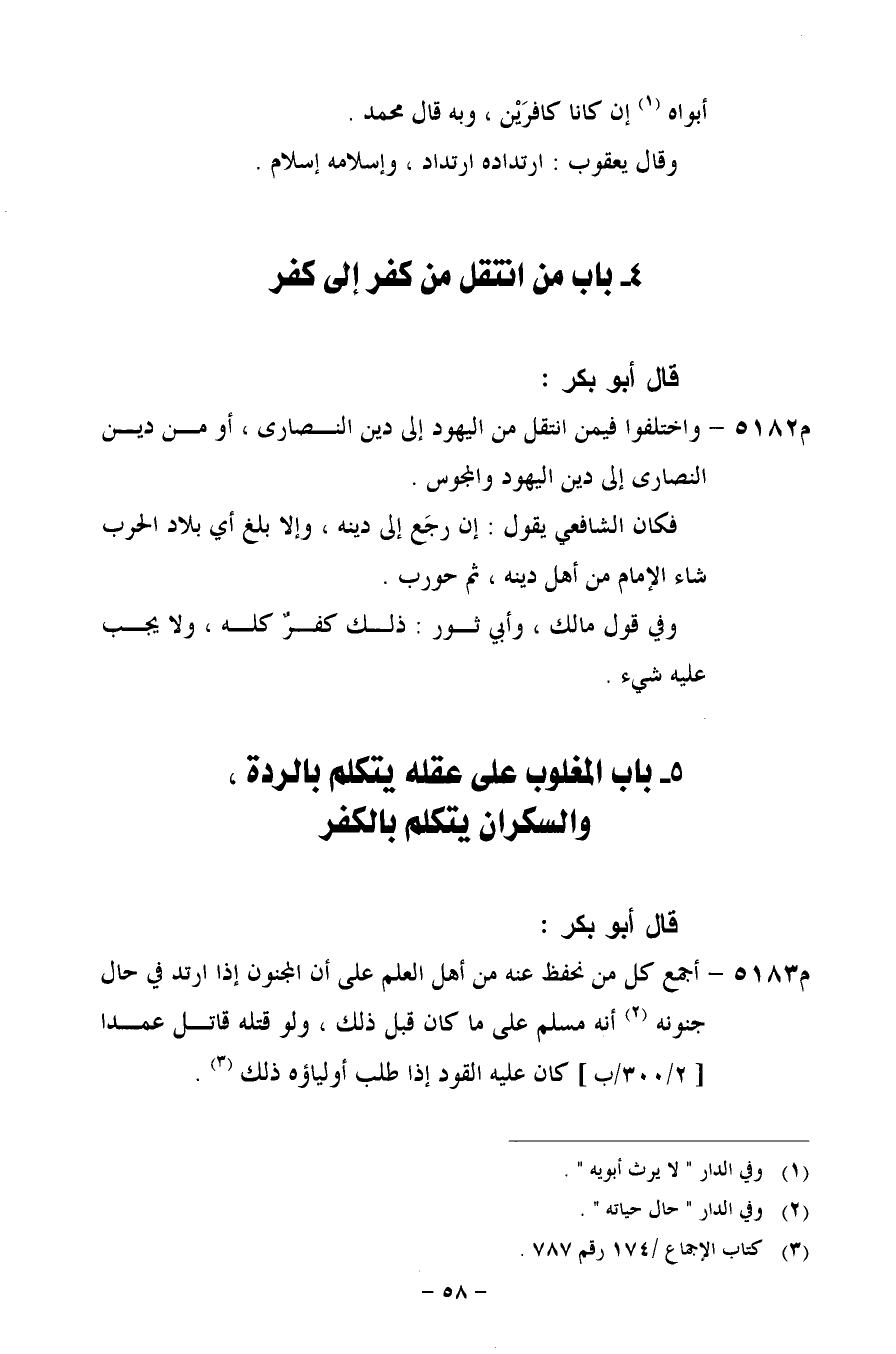م 5182 - واختلفوا فيمن انتقل من اليهود إلى دين النصارى، أو من دين النصارى إلى دين اليهود والمجوس.