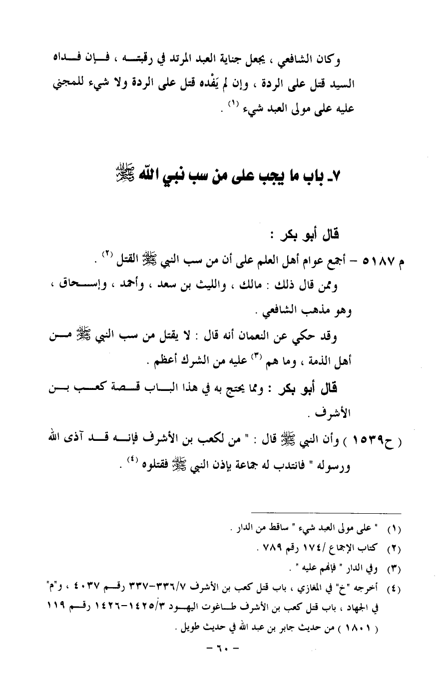 7 - باب ما يجب على من سب نبي الله - صلى الله عليه وسلم -