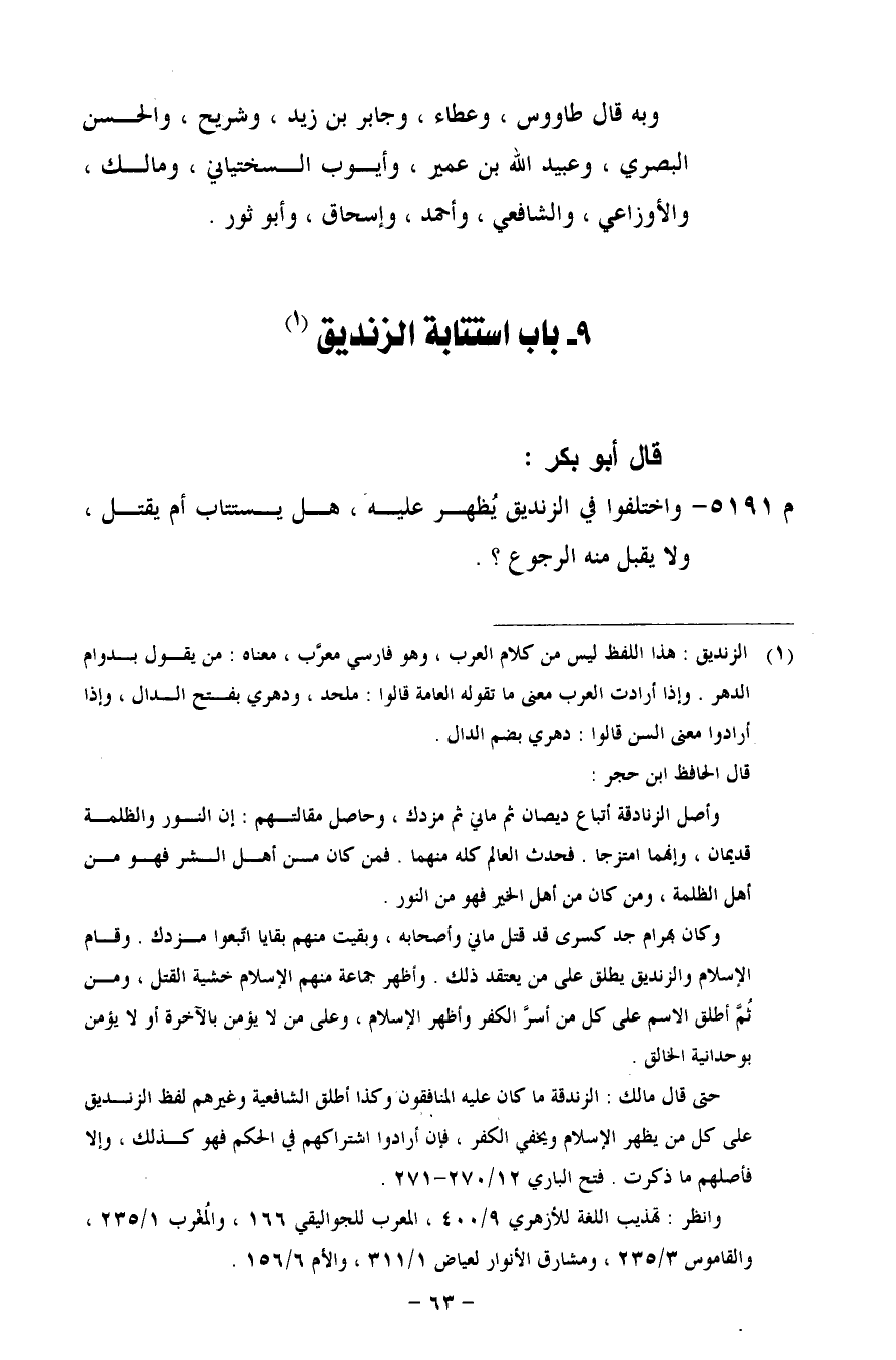 9 - باب استتابة الزنديق