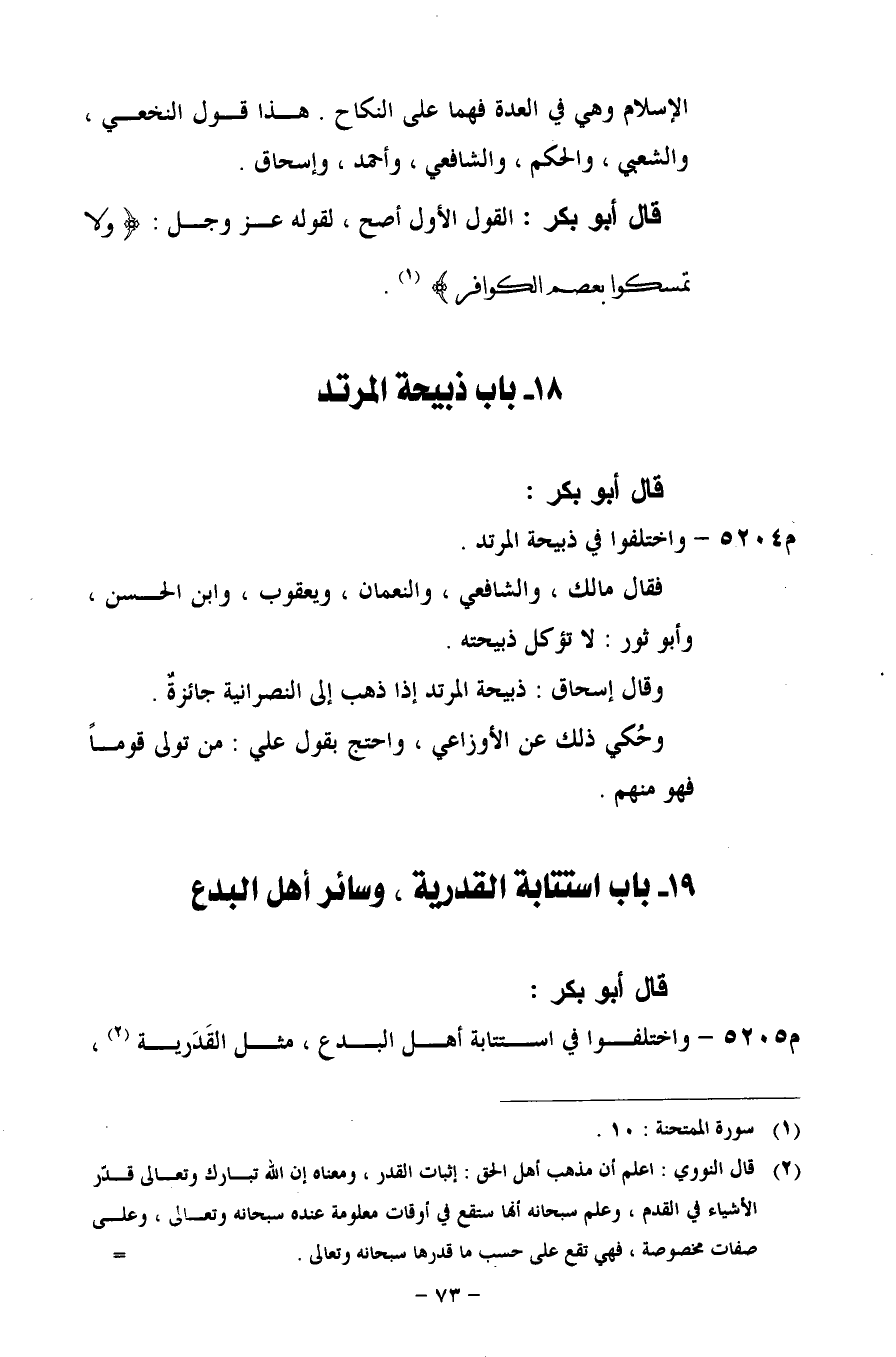 م 5205 - واختلفوا في استتابة أهل البدع، مثل القَدَرية،