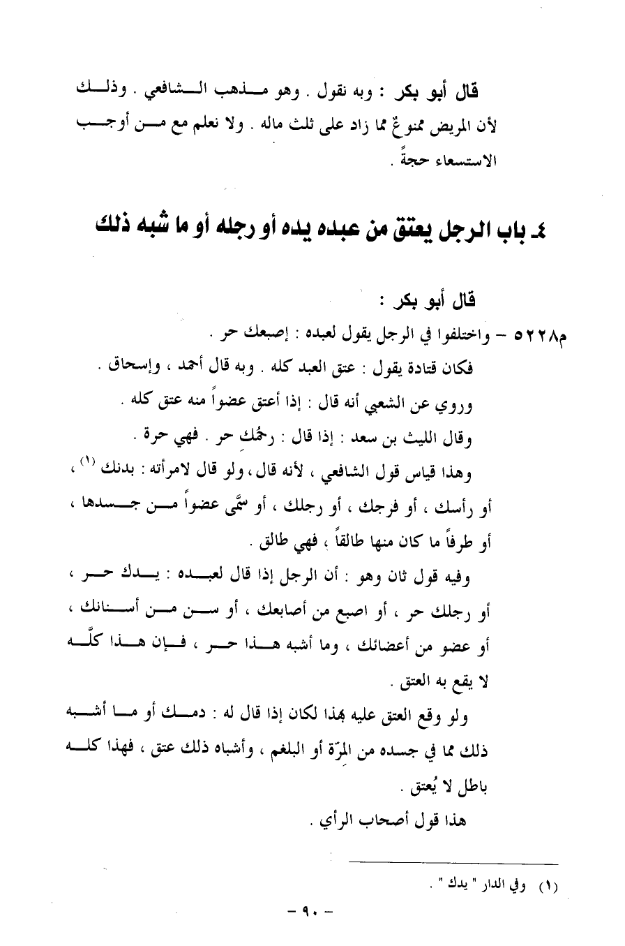 م 5228 - واختلفوا في الرجل يقول لعبده: إصبعك حر.