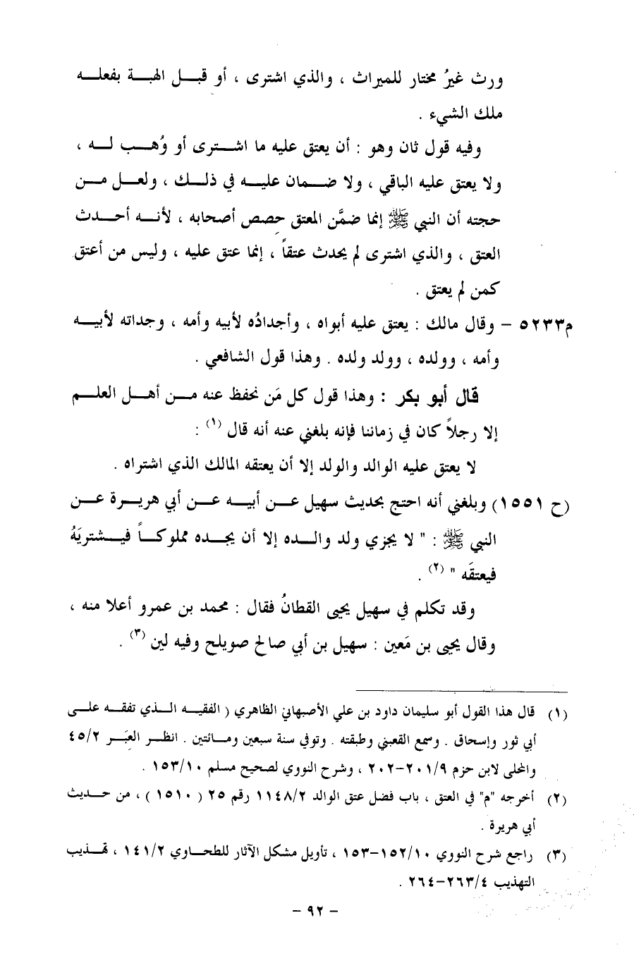 (ح 1551) وبلغني أنه احتج بحديث سهيل عن أبيه عن أبي هريرة عن النبي - صلى الله عليه وسلم -: "لا يجزي ولد والده إلا أن يجده مملوكاً فيشتريَهُ فيعتقَه".