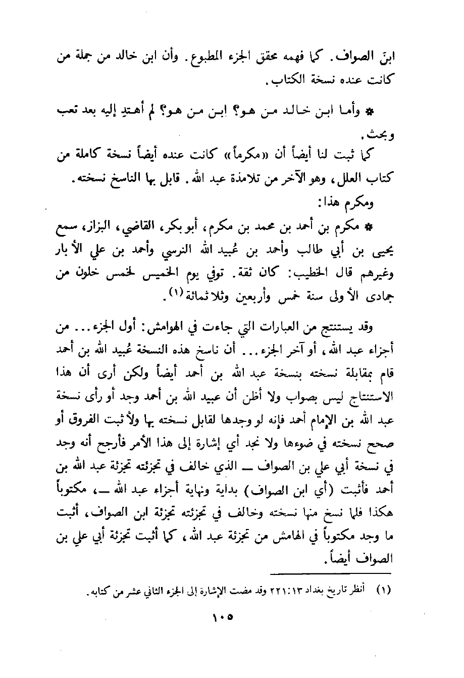 (1) أنظر تاريخ بغداد 13: 221 وقد مضت الاشارة إلى الجزء الثاني عشر من كتابه.
