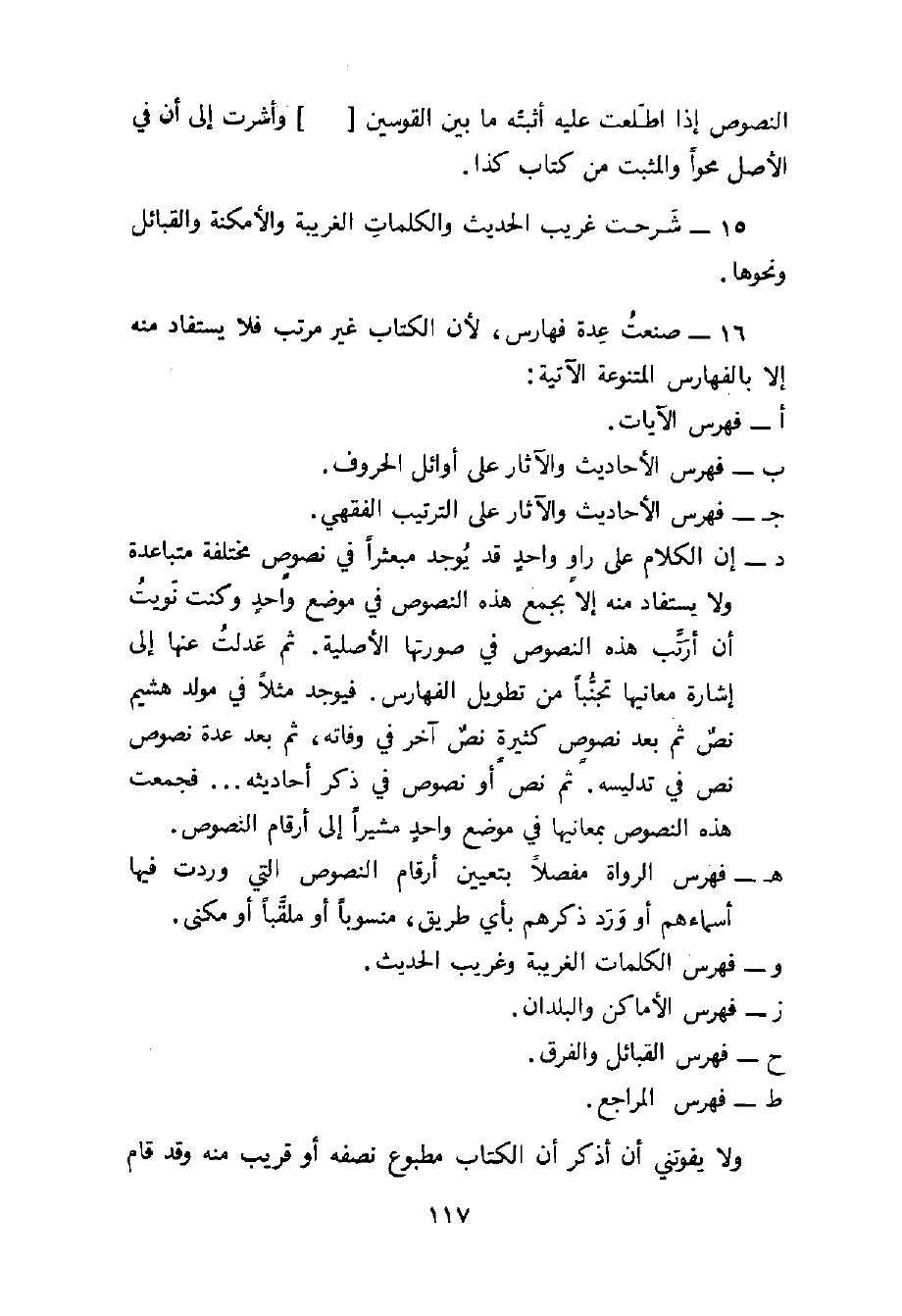 16 - صنعت عدة فهارس، لان الكتاب غير مرتب فلا يستفاد منه إلا بفهارس المتنوعة الاتية: