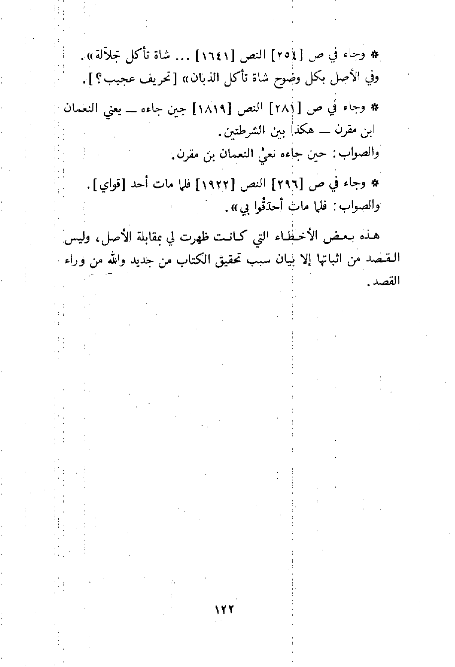 هذه بعض الاخطاء التي كانت ظهرت لي بمقابلة الاصل، وليس القصد من اثباتها إلا بيان سبب تحقيق الكتاب من جديد والله من وراء القصد.