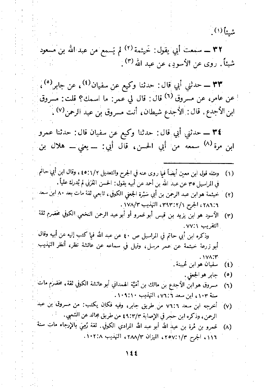 32 - سَمِعت أبي يَقُول خَيْثَمَة لم يسمع من عبد الله بن مَسْعُود شَيْئا روى عَن الْأسود عَن عبد الله