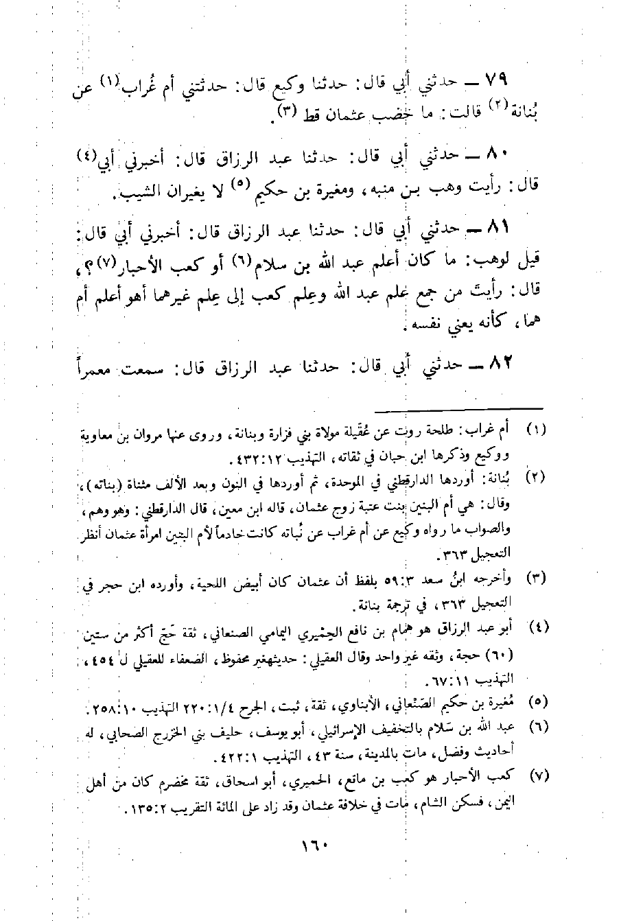 80 - حَدثنِي أبي قَالَ حَدثنَا عبد الرَّزَّاق قَالَ أَخْبرنِي أبي قَالَ رَأَيْت وهب بن مُنَبّه ومغيرة بن حَكِيم لَا يغيران الشيب