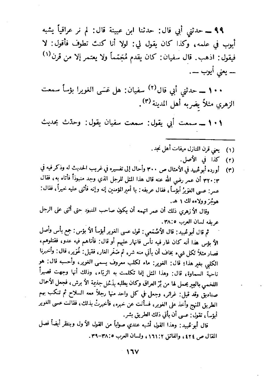 99 - حَدثنِي أبي قَالَ حَدثنَا بن عُيَيْنَة قَالَ لم نر عراقيا يشبه أَيُّوب فِي علمه وَكَذَا كَانَ يَقُول لي لَوْلَا أَنا كنت تَطوف فَأَقُول لَا فَيَقُول اذْهَبْ قَالَ سُفْيَان كَانَ يقدم مجمما وَلَا يعْتَمر إِلَّا من قرن يَعْنِي أَيُّوب