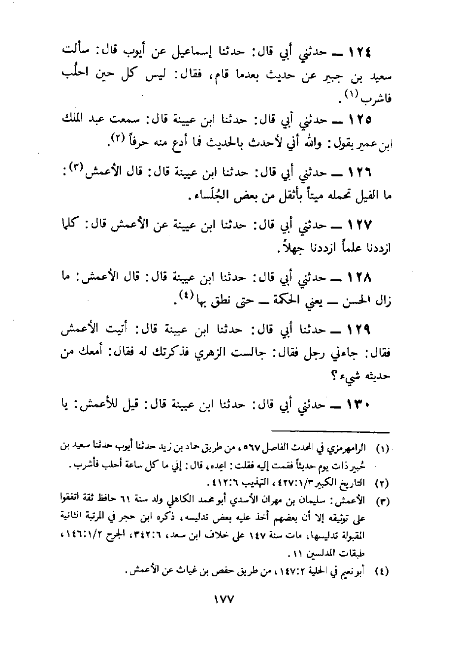 127 - حَدثنِي أبي قَالَ حَدثنَا بن عُيَيْنَة عَن الْأَعْمَش قَالَ كلما ازددنا علما ازددنا جهلا