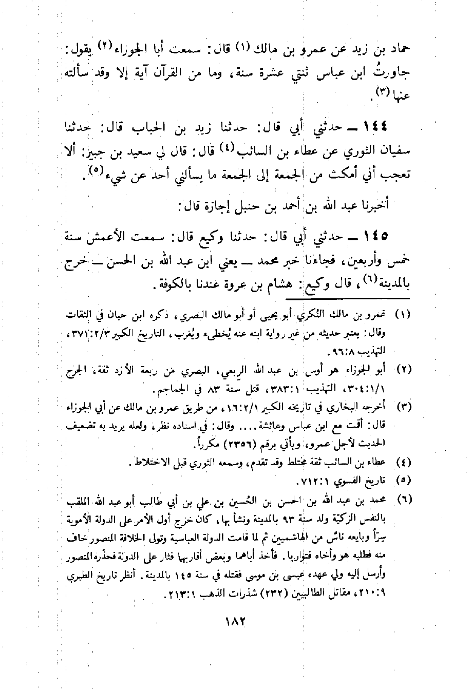 144 - حَدثنِي أبي قَالَ حَدثنَا زيد بن الْحباب قَالَ حَدثنَا سُفْيَان الثَّوْريّ عَن عَطاء بن السَّائِب قَالَ قَالَ لي سَعِيد بْن جُبَيْر أَلا تعجب أَنِّي أمكث من الْجُمُعَة إِلَى الْجُمُعَة مَا يسألني أحد عَن شَيْء أخبرنَا عبد الله بن أَحْمد بن حَنْبَل إجَازَة قَالَ