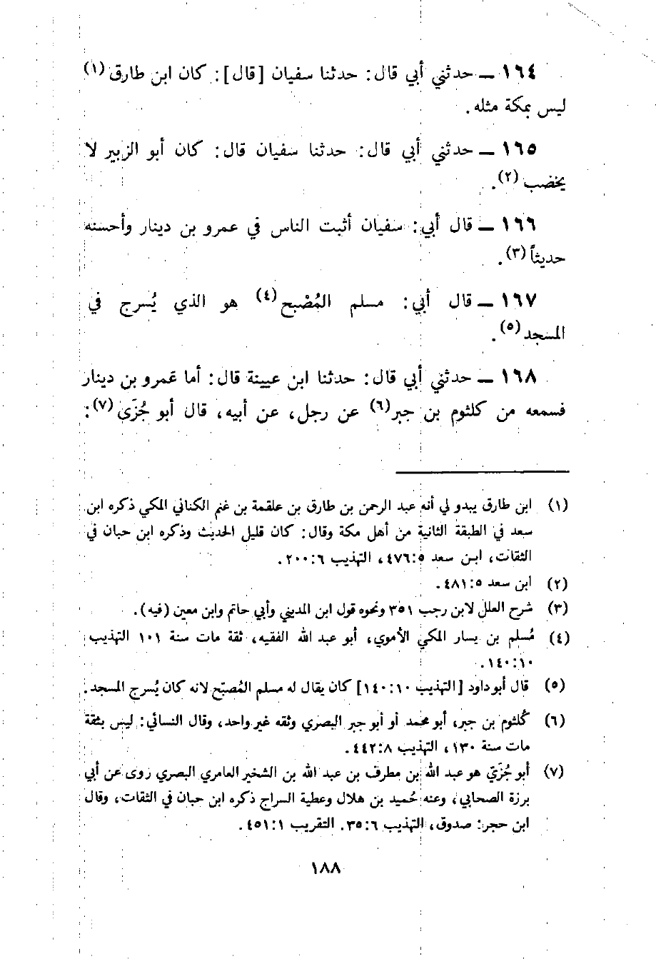 168 - حَدثنِي أبي قَالَ حَدثنَا بن عُيَيْنَة قَالَ أما عَمْرو بن دِينَار فَسَمعهُ من كُلْثُوم بن جبر عَن رجل عَن أَبِيه قَالَ أَبُو جزي فَسَأَلته يَعْنِي كُلْثُوم فَقَالَ إِنَّمَا أَخْبرنِي شيخ أَعْرَابِي عَن أَبِيه