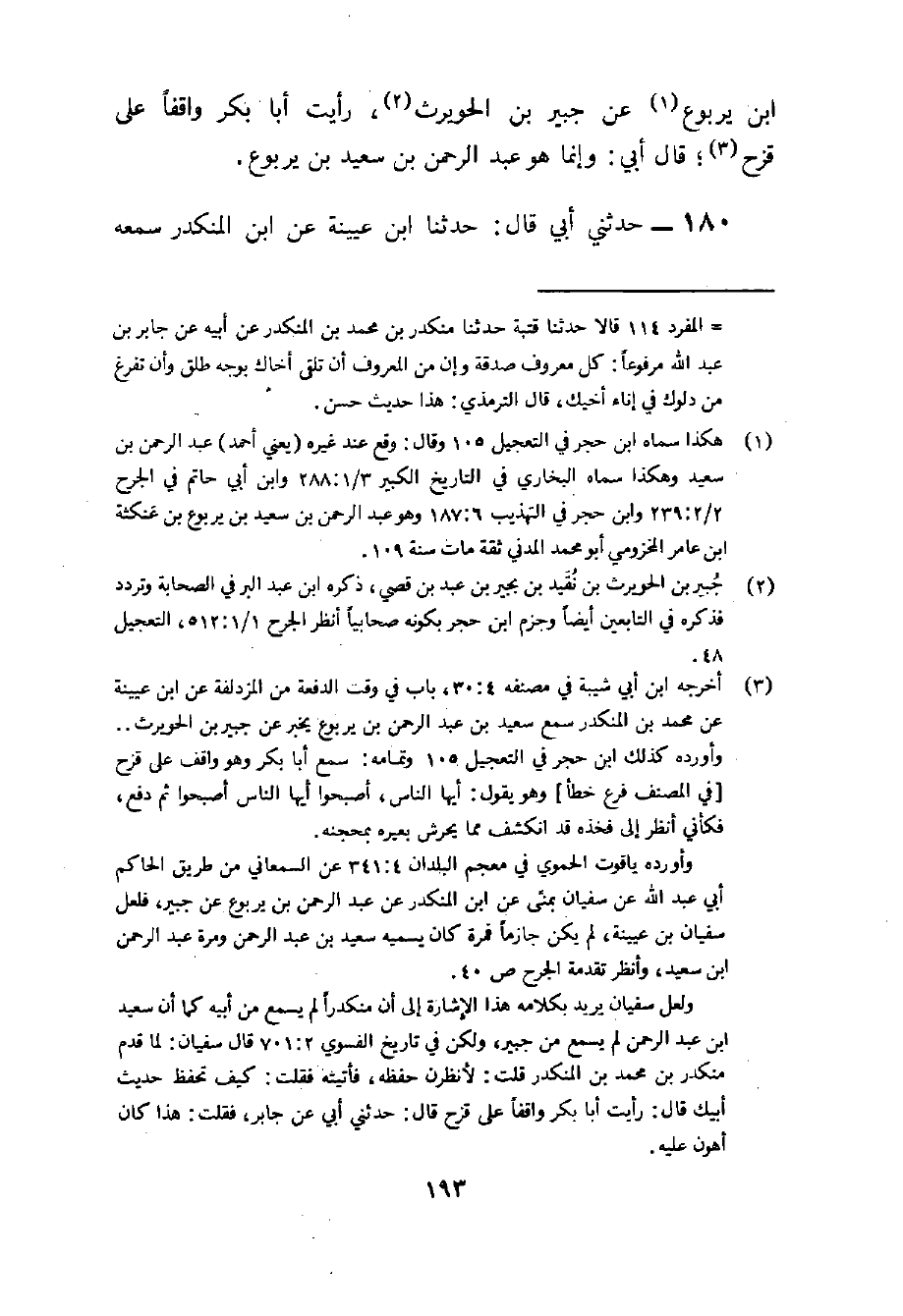 180 - حَدثنِي أبي قَالَ حَدثنَا بن عُيَيْنَة عَن بن الْمُنْكَدر سَمعه من عَطاء بن يسَار وَعبد الْعَزِيز بن رفيع عَن أبي صَالح عَن عَطاء بن يسَار قَالَ سُفْيَان كَانَ عرمو حَدثنَا عَنهُ فَأتيت الْكُوفَة فَوَجَدته حَيا قلت كم أَتَى لَك قَالَ أَربع وَثَمَانُونَ يَعْنِي عبد الْعَزِيز