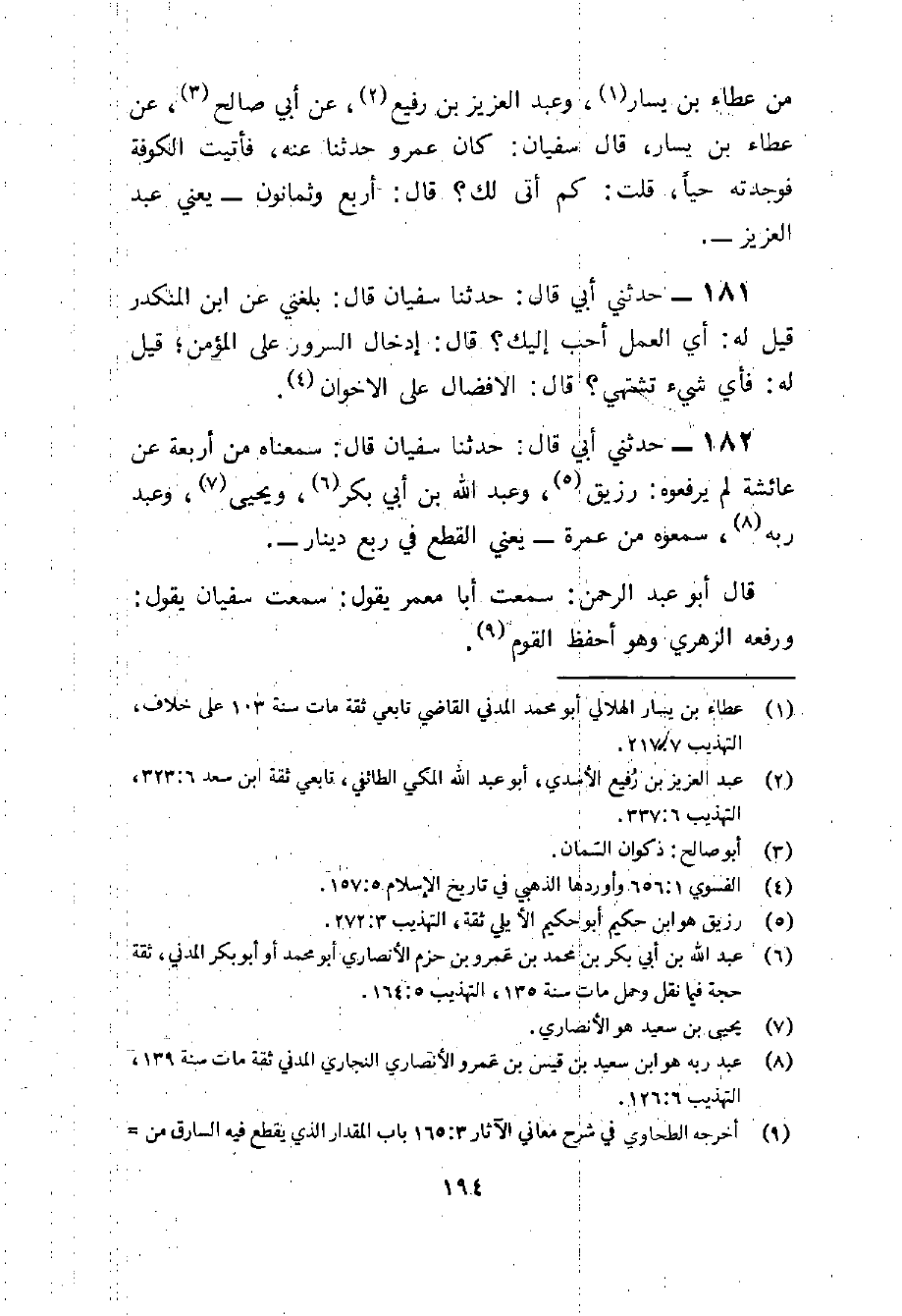 182 - حَدثنِي أبي قَالَ حَدثنَا سُفْيَان قَالَ سمعناه من أَرْبَعَة عَن عَائِشَة لم يرفعوه رُزَيْق وَعبد الله بن أبي بكر وَيحيى وَعبد ربه سَمِعُوهُ من عمْرَة يَعْنِي الْقطع فِي ربع دِينَار قَالَ أَبُو عبد الرَّحْمَن سَمِعت أَبَا معمر يَقُول سَمِعت سُفْيَان يَقُول وَرَفعه الزُّهْرِيّ وَهُوَ أحفظ الْقَوْم