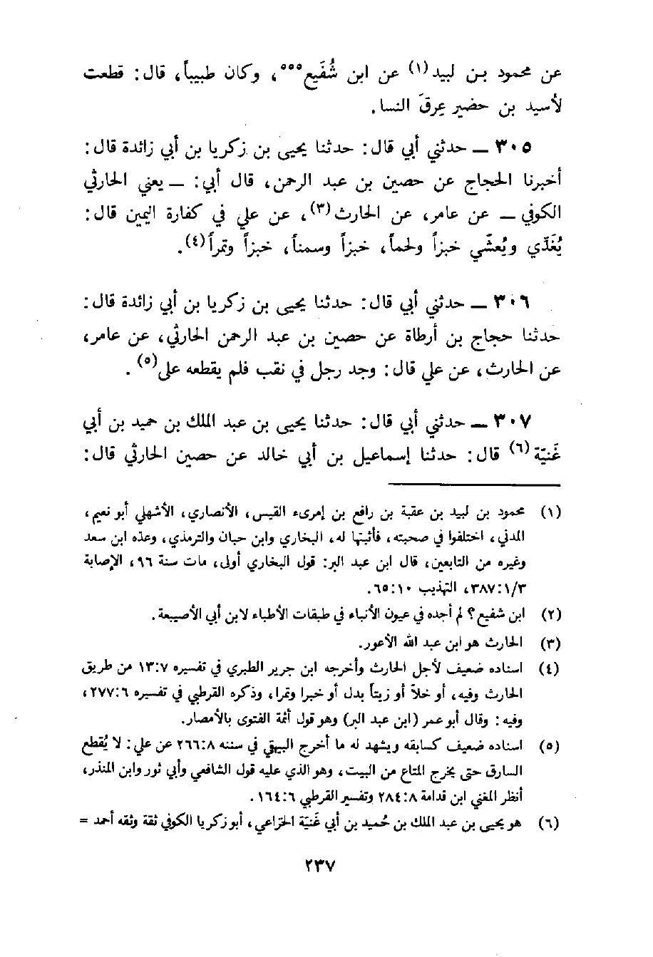 306 - حَدَّثَنِي أَبِي قَالَ حَدَّثَنَا يَحْيَى بْنُ زَكَرِيَّا بْنِ أَبِي زَائِدَةَ قَالَ حَدَّثَنَا حَجَّاجُ بْنُ أَرْطَاةَ عَنْ حُصَيْنِ بْنِ عَبْدِ الرَّحْمَنِ الْحَارِثِيِّ عَنْ عَامِرٍ عَنِ الْحَارِثِ عَنْ عَلِيٍّ قَالَ وَجَدَ رَجُلٌ فِي نَقَبٍ فَلَمْ يُقْطِعْهُ عَليّ