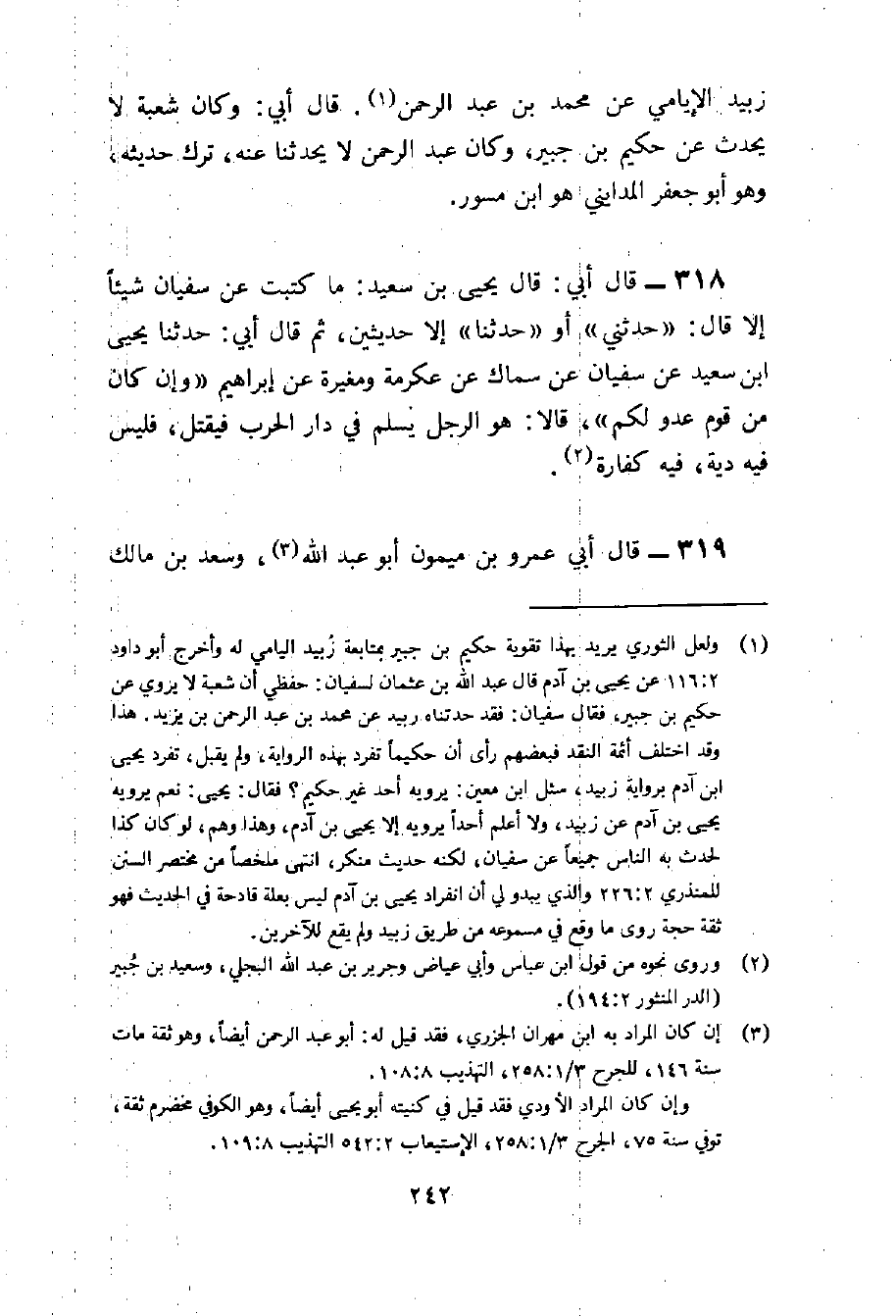 318 - قَالَ أبي قَالَ يحيى بن سعيد مَا كتبت عَن سُفْيَان شَيْئا إِلَّا قَالَ حَدثنِي أَو حَدثنَا إِلَّا حديثين ثمَّ قَالَ أبي حَدثنَا يحيى بن سعيد عَن سُفْيَان عَن سماك عَن عِكْرِمَة ومغيرة عَن إِبْرَاهِيم وَإِن كَانَ من قوم عَدو لكم قَالَا هُوَ الرجل يسلم فِي دَار الْحَرْب فَيقْتل فَلَيْسَ فِيهِ دِيَة فِيهِ كَفَّارَة
