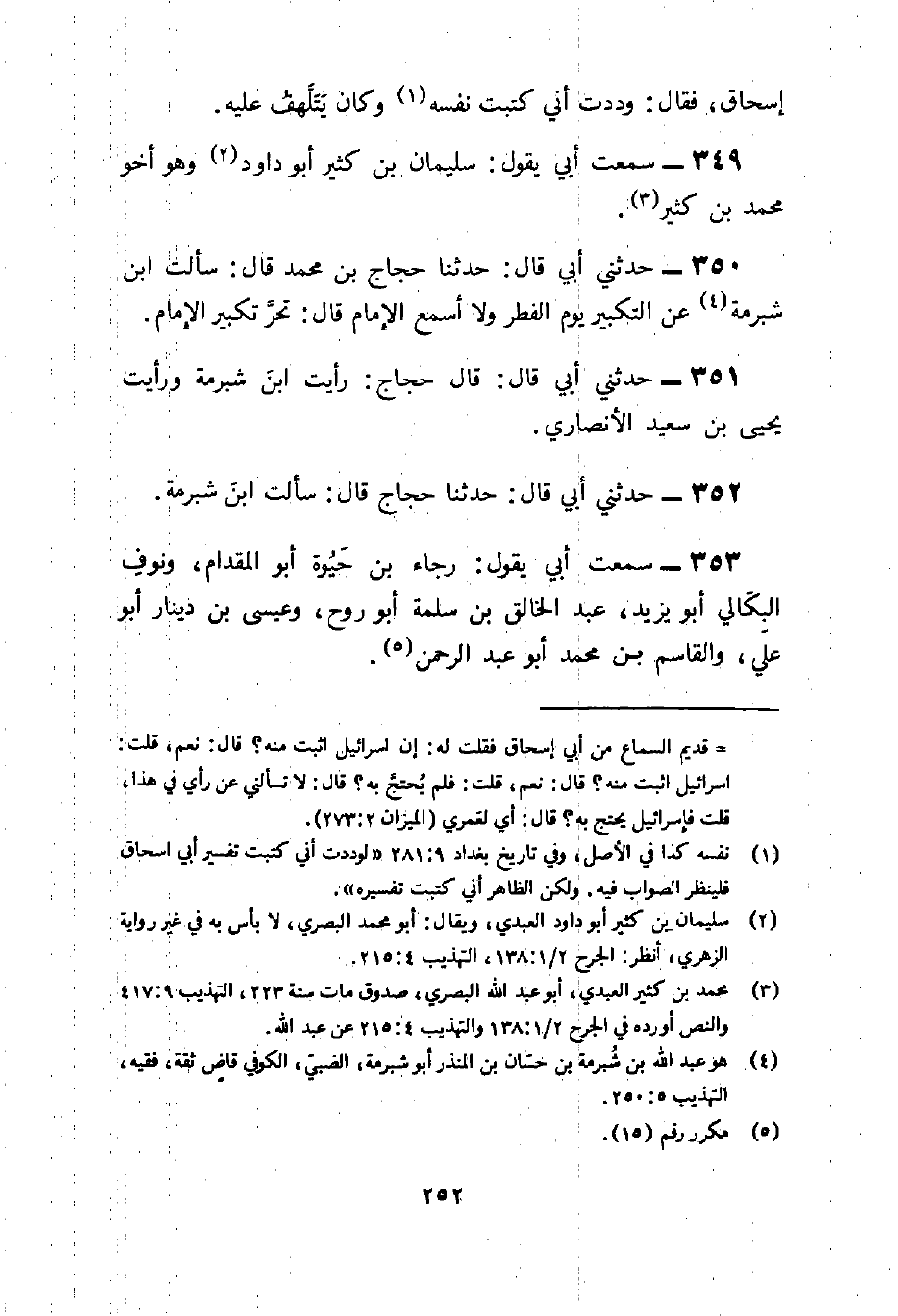 351 - حَدثنِي أبي قَالَ قَالَ حجاج رَأَيْت بن شبْرمَة وَرَأَيْت يحيى بن سعيد الْأنْصَارِيّ
