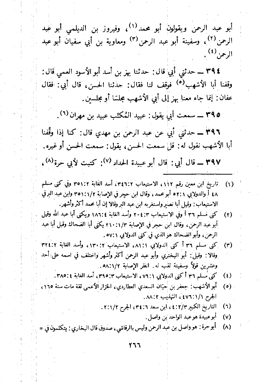 396 - حَدثنِي أبي عَن عبد الرَّحْمَن بن مهْدي قَالَ كُنَّا إِذا وقفنا أَبَا الْأَشْهب نقُول لَهُ قل سَمِعت الْحسن يَقُول سَمِعت الْحسن أَو غَيره