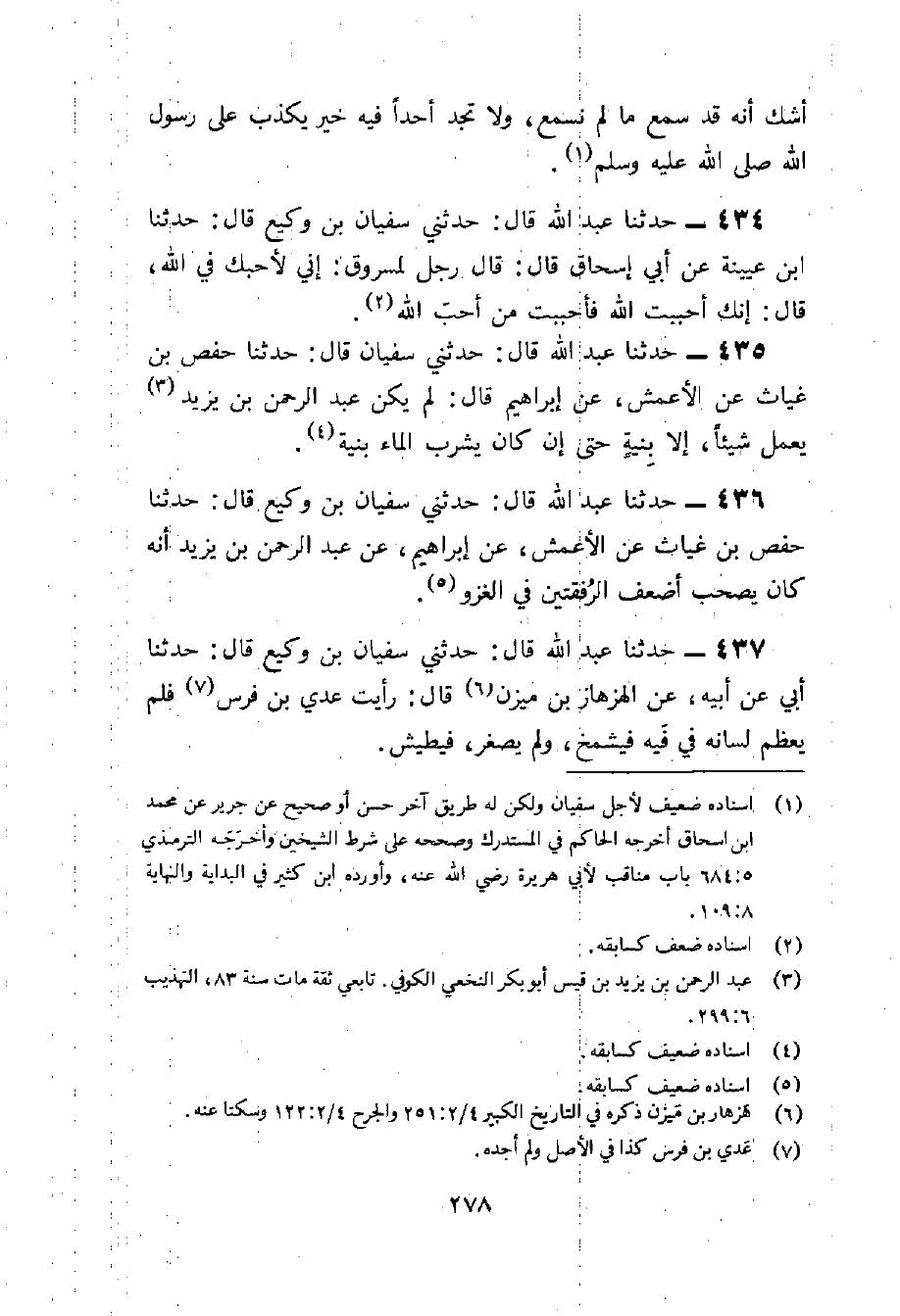 436 - حَدَّثَنَا عَبْدُ اللَّهِ قَالَ حَدَّثَنِي سُفْيَانُ بْنُ وَكِيعٍ قَالَ حَدثنَا حَفْص بن غياث عَنِ الْأَعْمَشِ عَنْ إِبْرَاهِيمَ عَنْ عَبْدِ الرَّحْمَنِ بْنِ يَزِيدَ أَنَّهُ كَانَ يَصْحَبُ أَضْعَفَ الرُّفْقَتَيْنِ فِي الْغَزْوِ