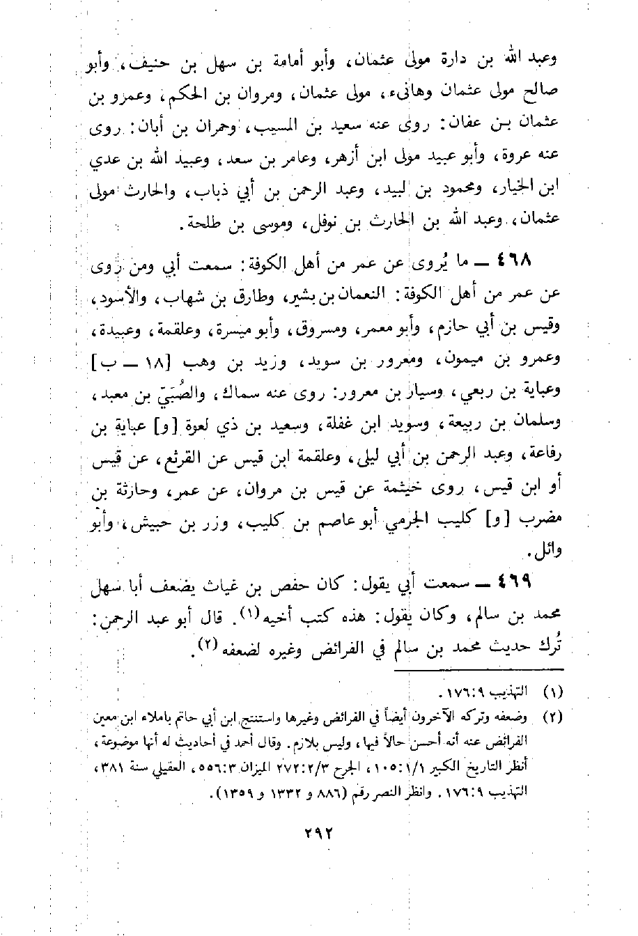 469 - سَمِعت أبي يَقُول كَانَ حَفْص بن غياث يضعف أَبَا سهل مُحَمَّد بن سَالم وَكَانَ يَقُول هَذِه كتب أَخِيه قَالَ أَبُو عبد الرَّحْمَن ترك حَدِيث مُحَمَّد بن سَالم فِي الْفَرَائِض وَغَيره لضَعْفه