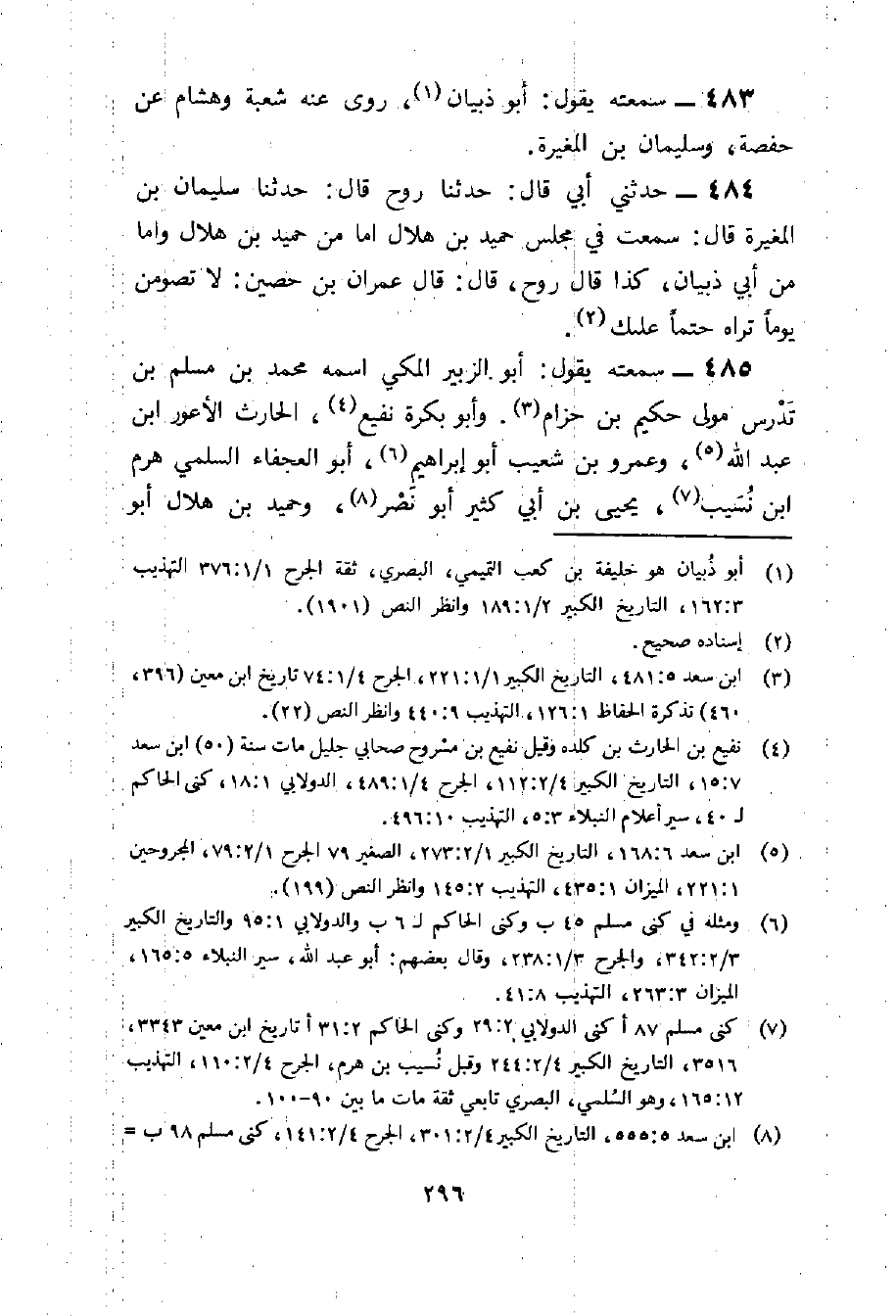 485 - سمعته يَقُول أَبُو الزبير الْمَكِّيّ اسْمه مُحَمَّد بن مُسلم بن تدرس مولى حَكِيم بن حزَام وَأَبُو بكرَة نفيع الْحَارِث الْأَعْوَر بن عبد الله وَعَمْرو بن شُعَيْب أَبُو إِبْرَاهِيم أَبُو الْعَجْفَاء السّلمِيّ هرم بن نسيب يحيى بن أبي كثير أَبُو نصر وَحميد بن هِلَال